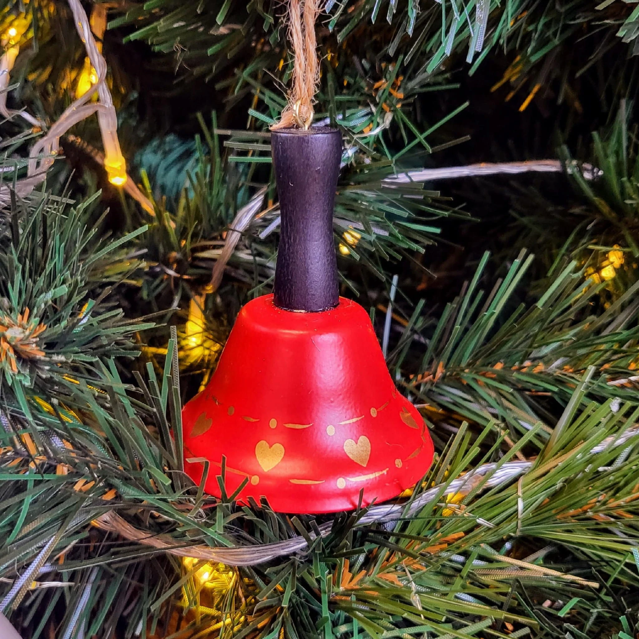 METALOWY DZWON DZWONEK WISZĄCY CZERWONY SERCA