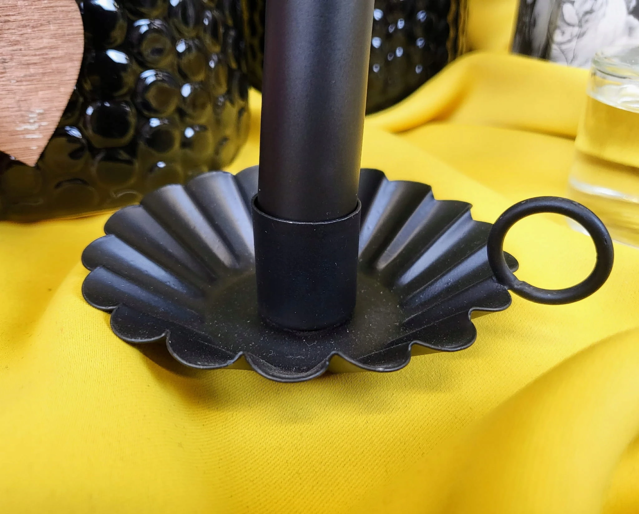 METALOWY ŚWIECZNIK CZARNY Z RĄCZKĄ