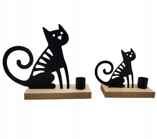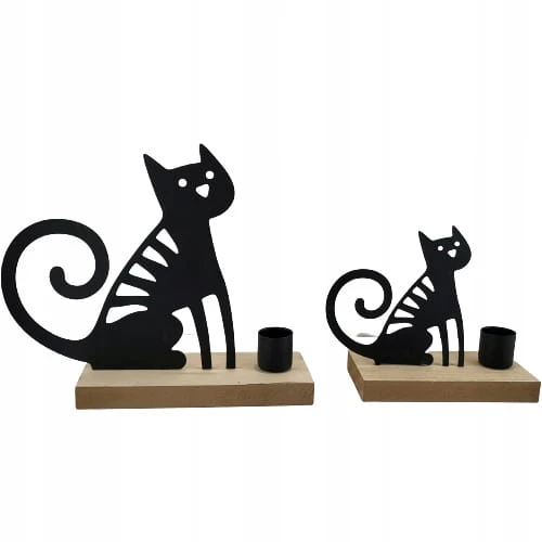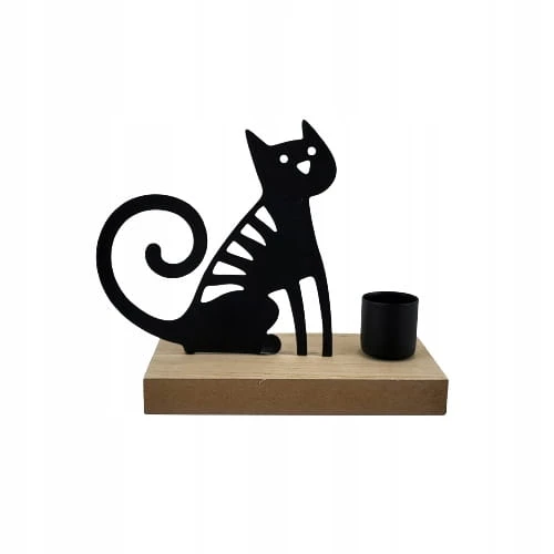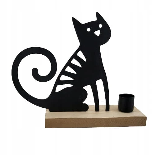 Metalowy świecznik z sympatycznym kotem. Idealnie wkomponuje się w różne wnętrza, można również udekorować nim balkon czy taras.