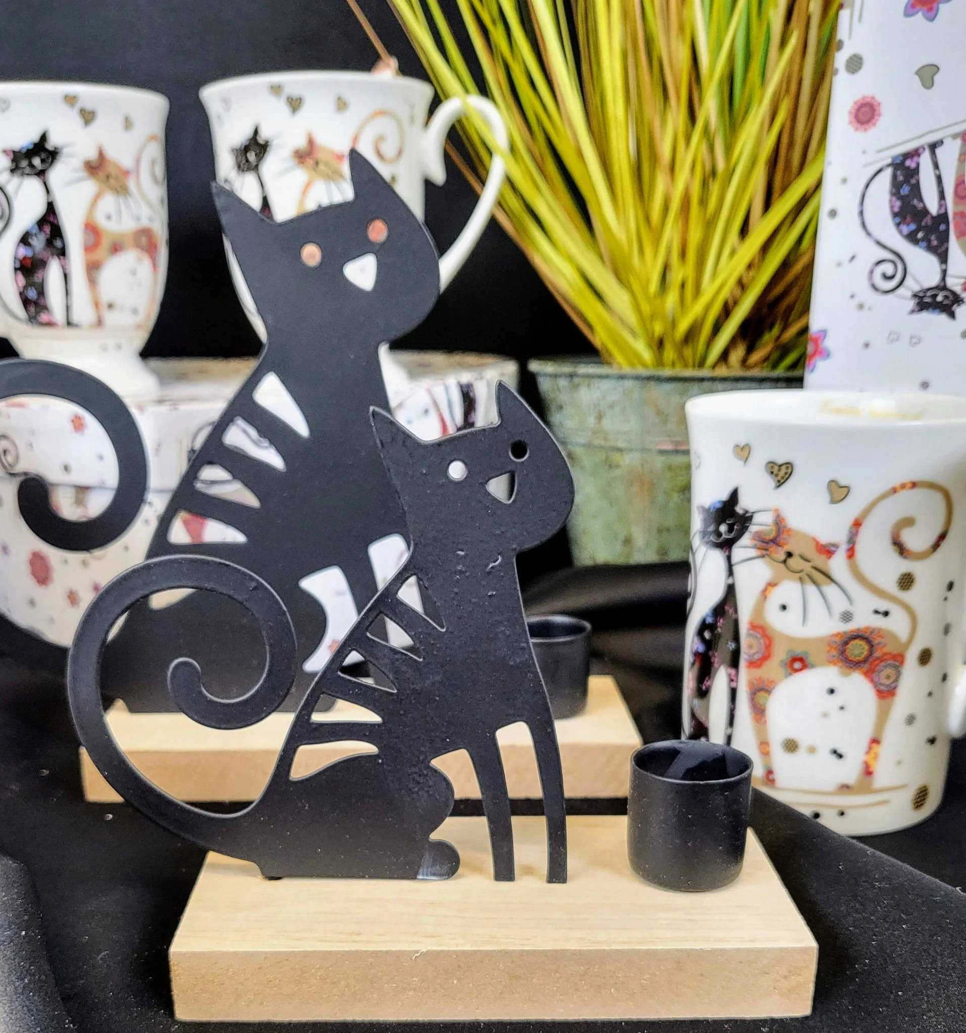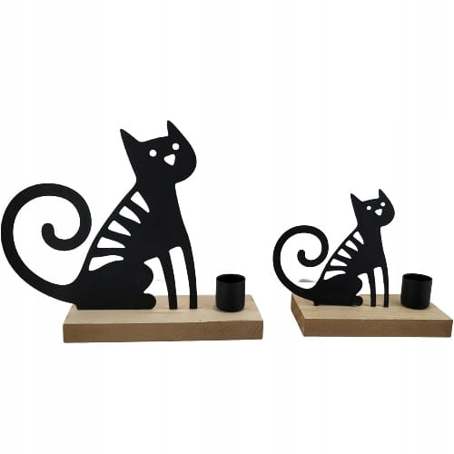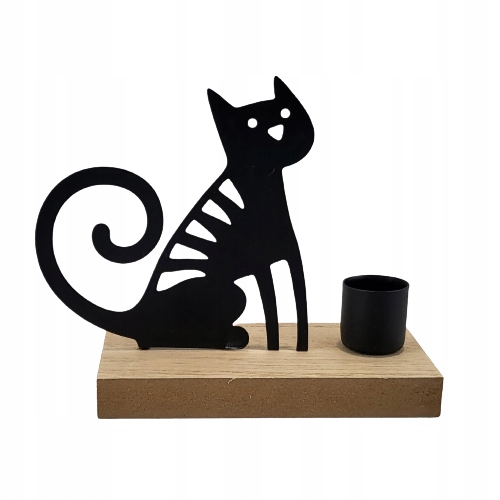METALOWY ŚWIECZNIK Z CZARNYM KOTEM MAŁY