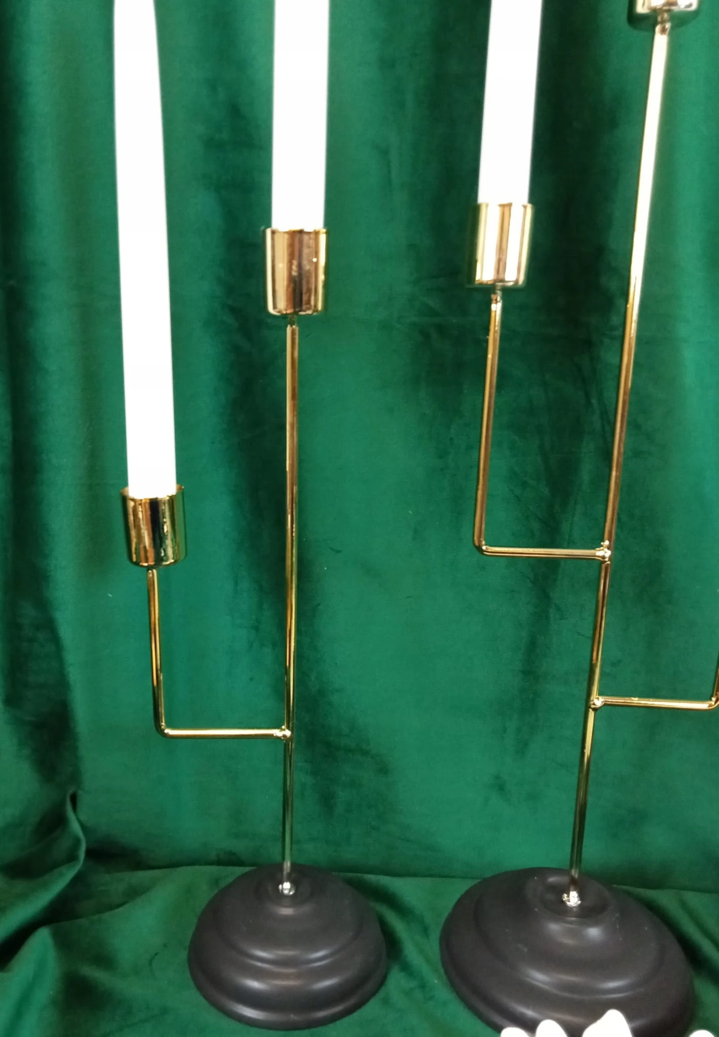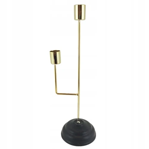 METALOWY ŚWIECZNIK ZŁOTO-CZARNY NA 2 ŚWIECE