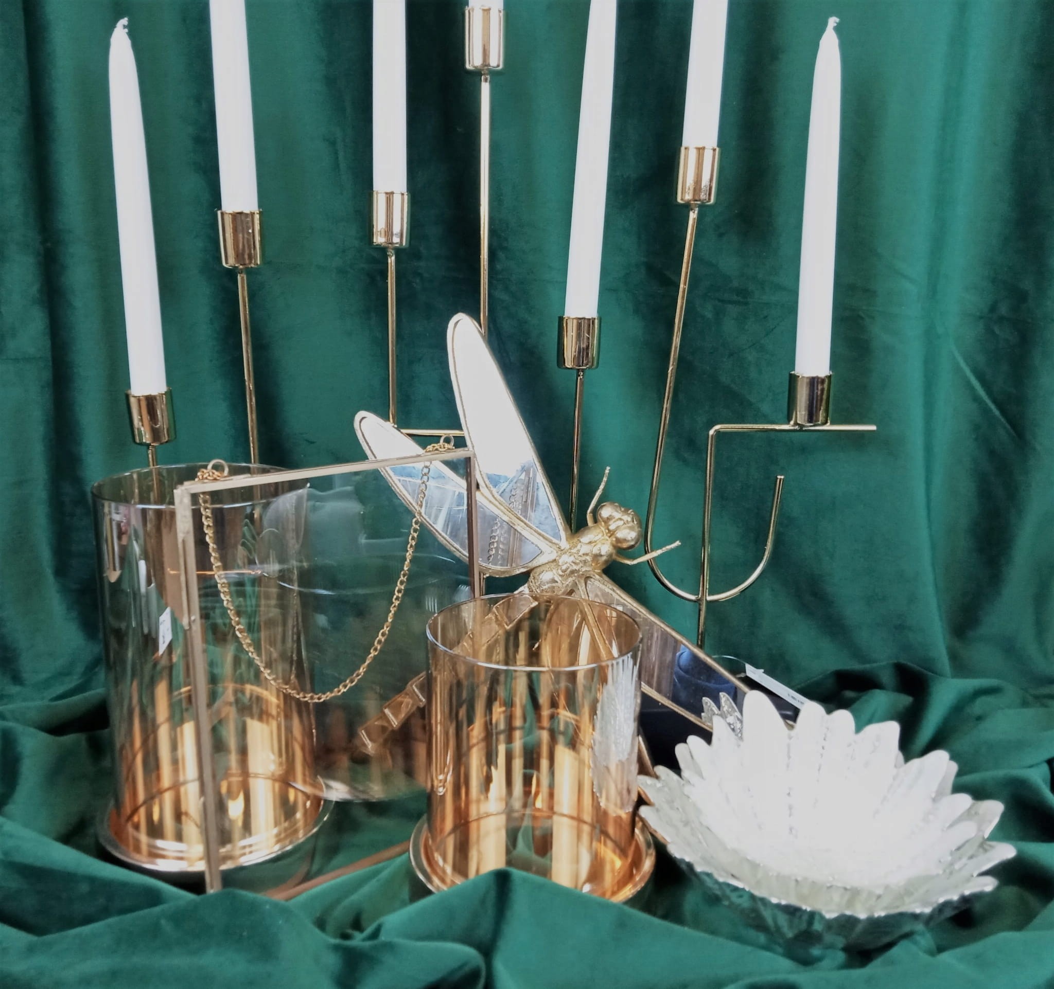 ŚWIECZNIK ZŁOTY NA CZARNEJ PODSTAWIE