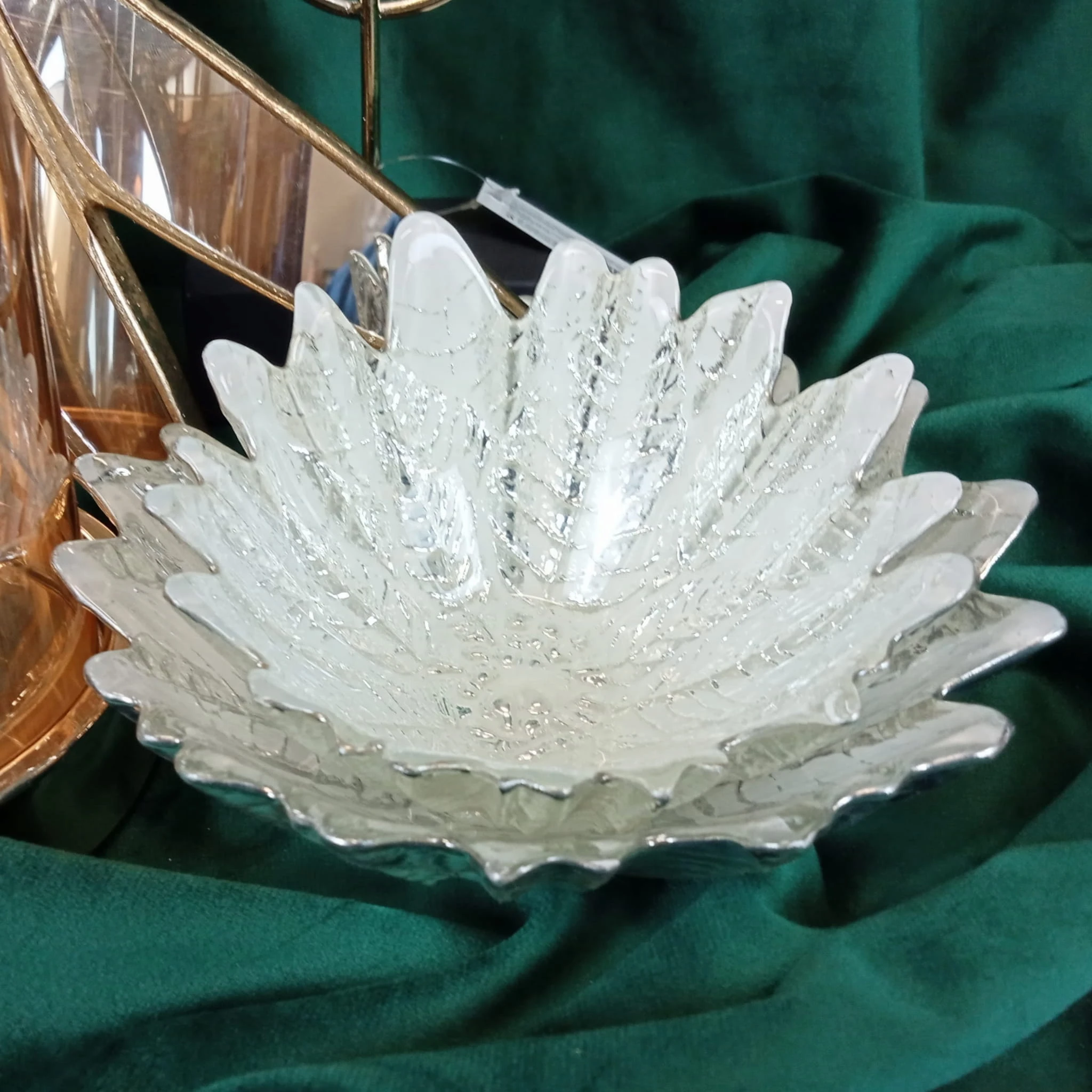 Piękna szklana misa w kolorach perłowo-srebrnych.