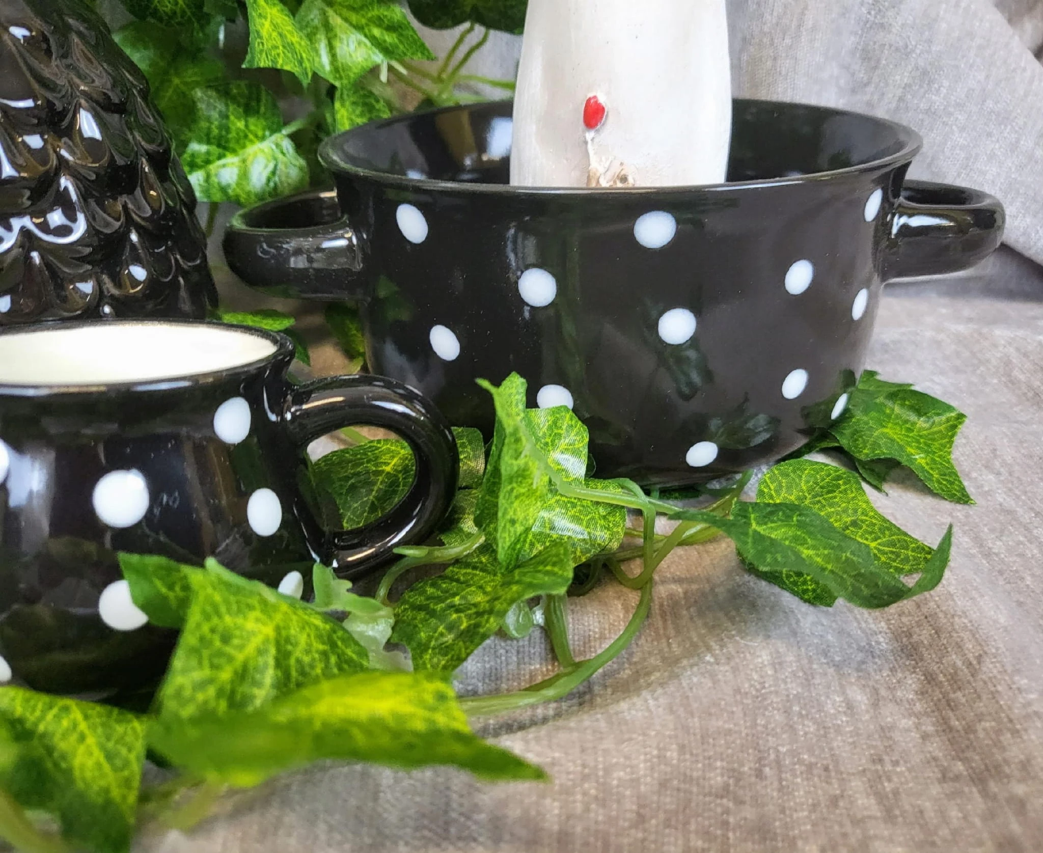 MISKA CERAMICZNA W KROPKI CZARNA 560ML
