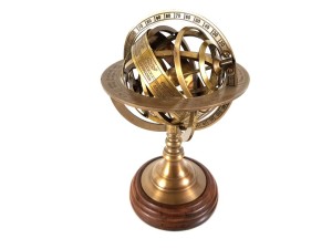 Mosiężne astrolabium sferyczne na podstawie drewnianej NI3258;