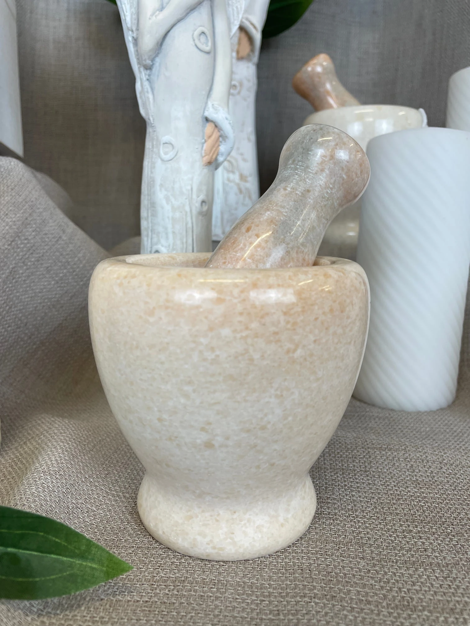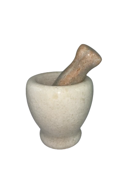 Piękny moździerz wykonany z kamienia mydlanego w stylu retro. Doda ciekawego akcentu w każdej kuchni. Niezbędnik do ubijania ziół, przypraw.