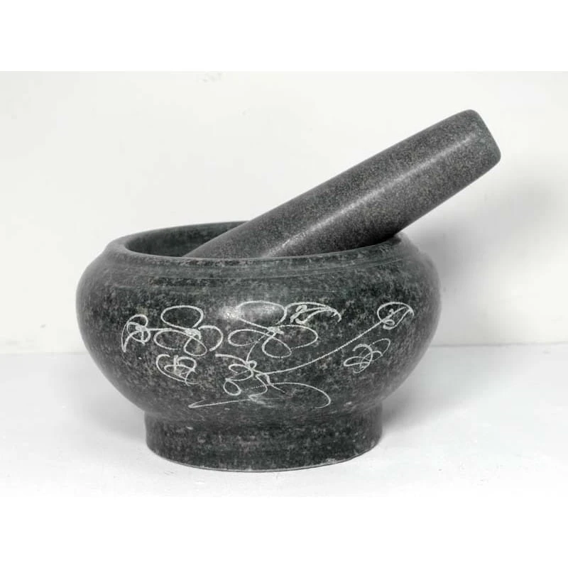 Piękny moździerz wykonany z kamienia w stylu retro. Doda ciekawego akcentu w każdej kuchni. Niezbędnik do ubijania ziół, przypraw.