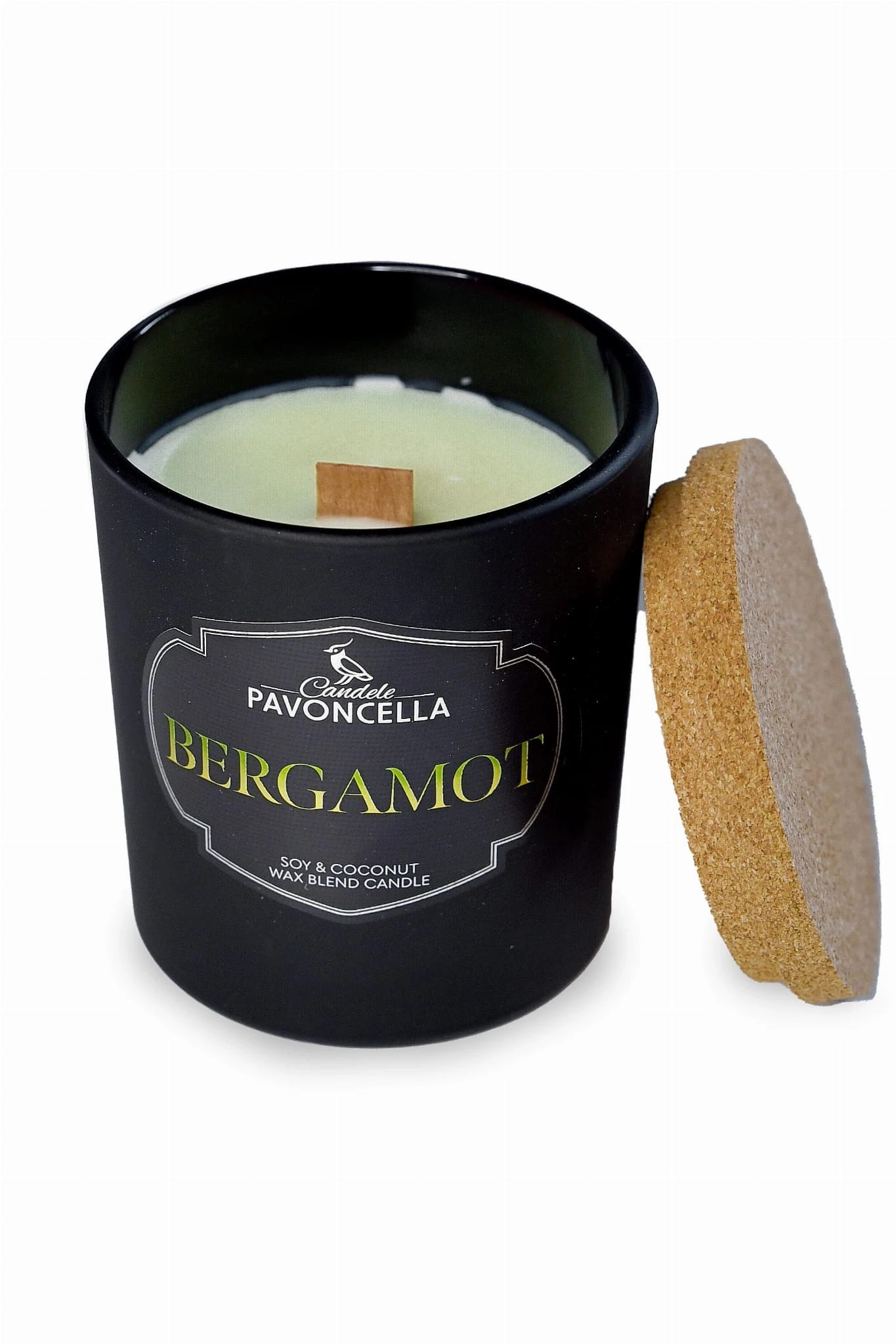 Świeca z wosku sojowo-kokosowego z drewnianym knotem o zapachu Bergamot