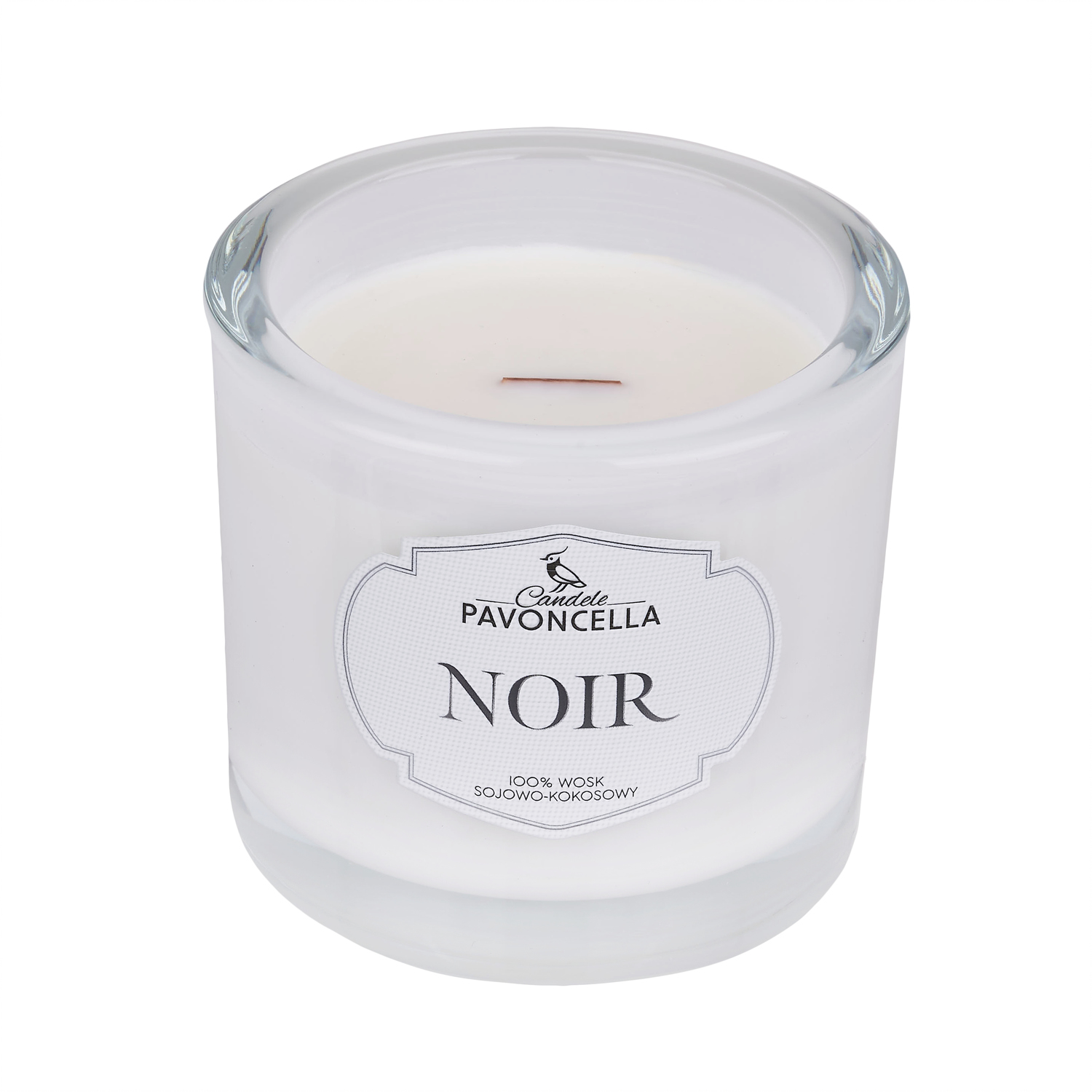 Świeca z wosku sojowo-kokosowego z drewnianym knotem o zapachu Noir.