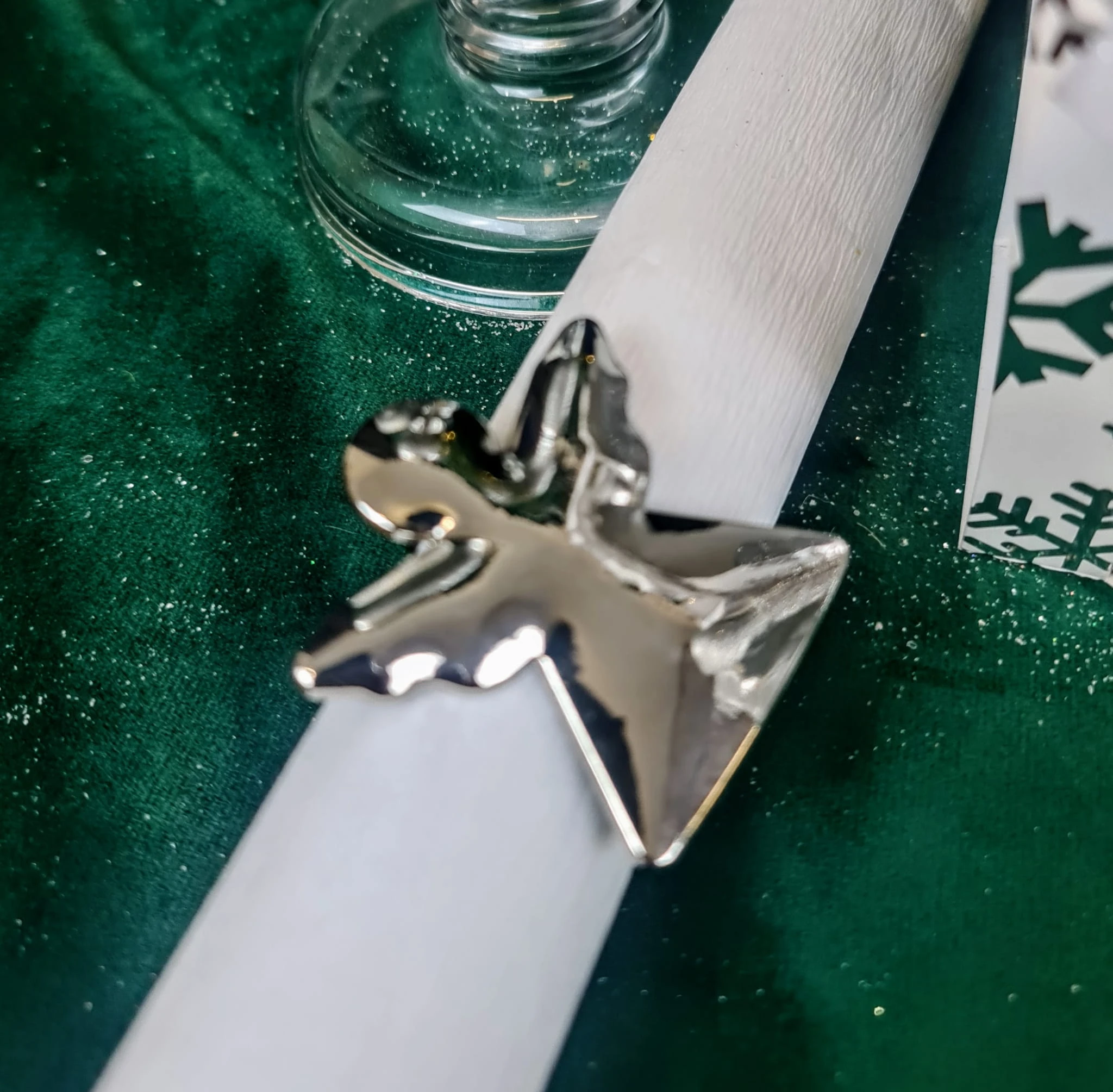Nowoczesny serwetnik w kształcie anioła to doskonała dekoracja na stół. Umieść chusteczki lub serwetki wewnątrz obrączki, a każdy zwróci na nią uwagę. Piękny dodatek na świąteczny stół.