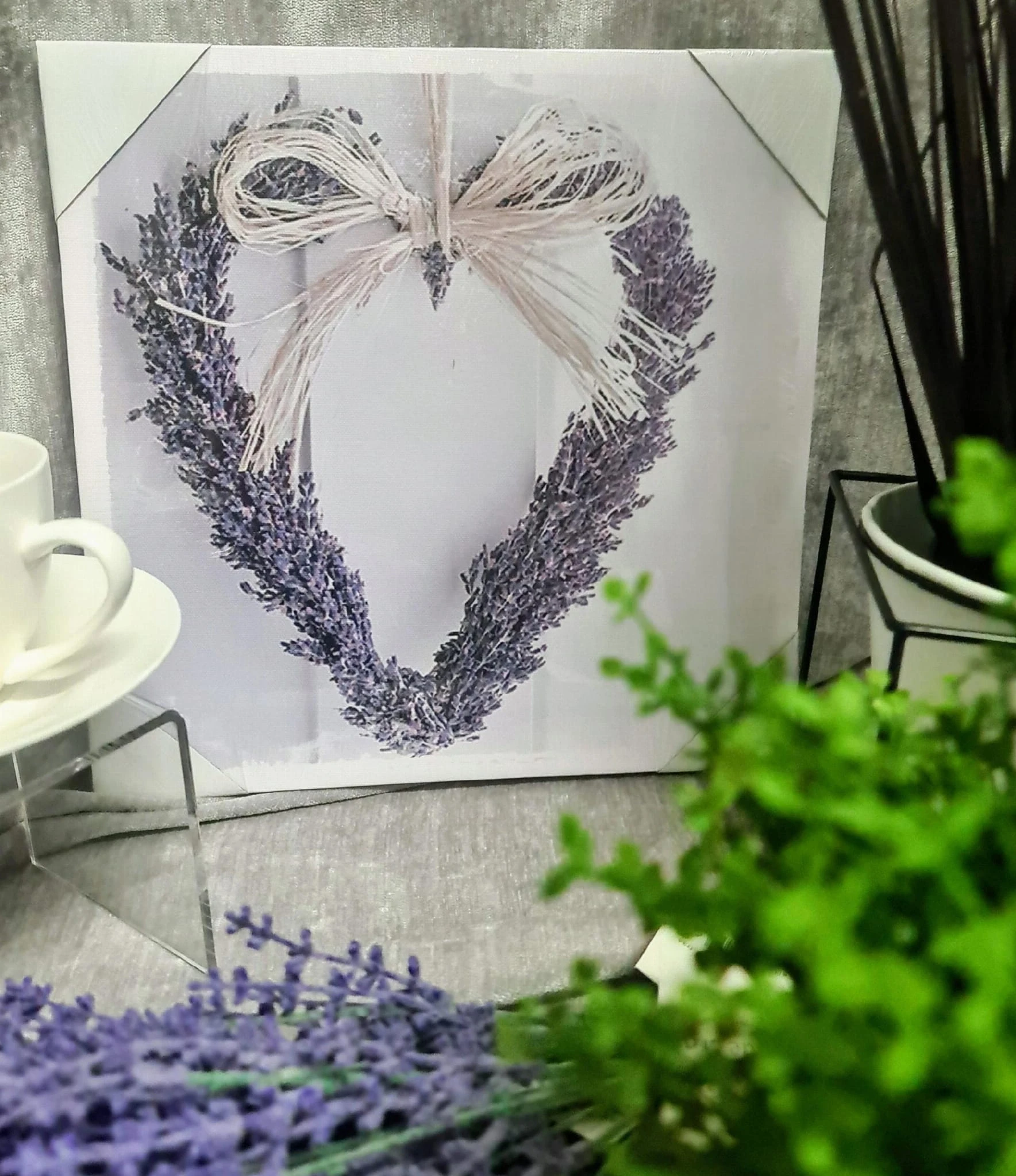 OBRAZ NA PŁÓTNIE LAWENDOWE SERCE 28X28X1,5CM