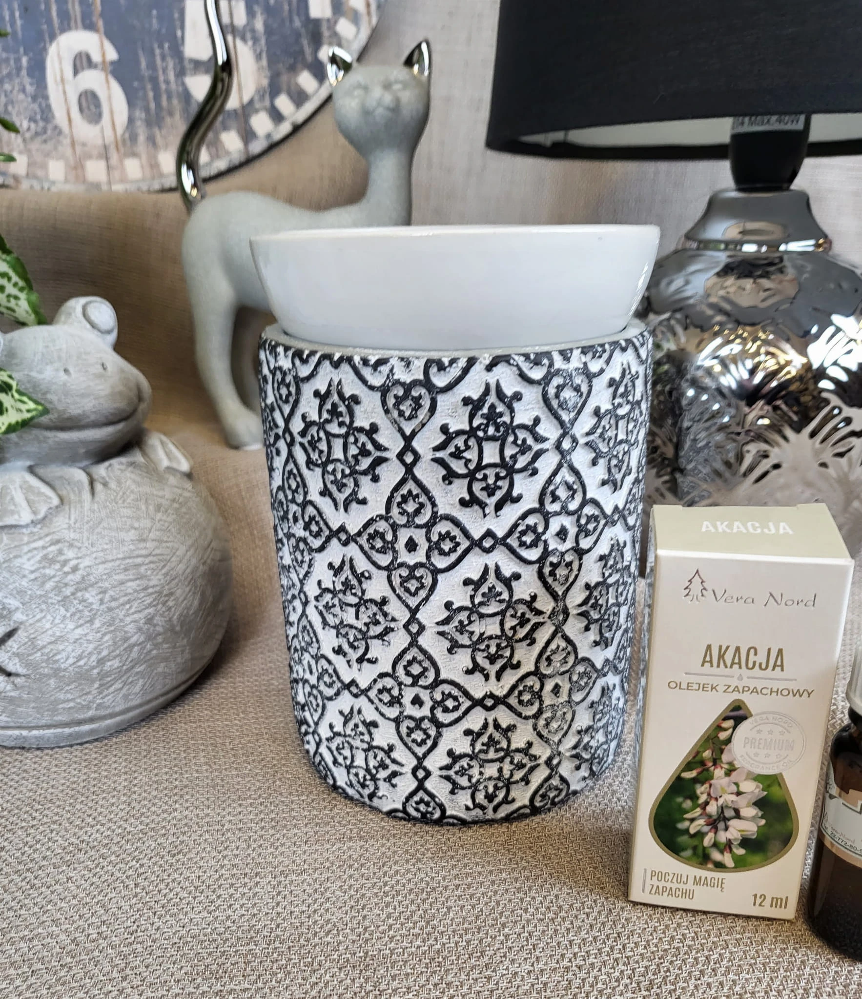 - pojemniczek na wodę w kominku aromatycznym napełnić wodą i dodać 3 - 6 kropli olejku