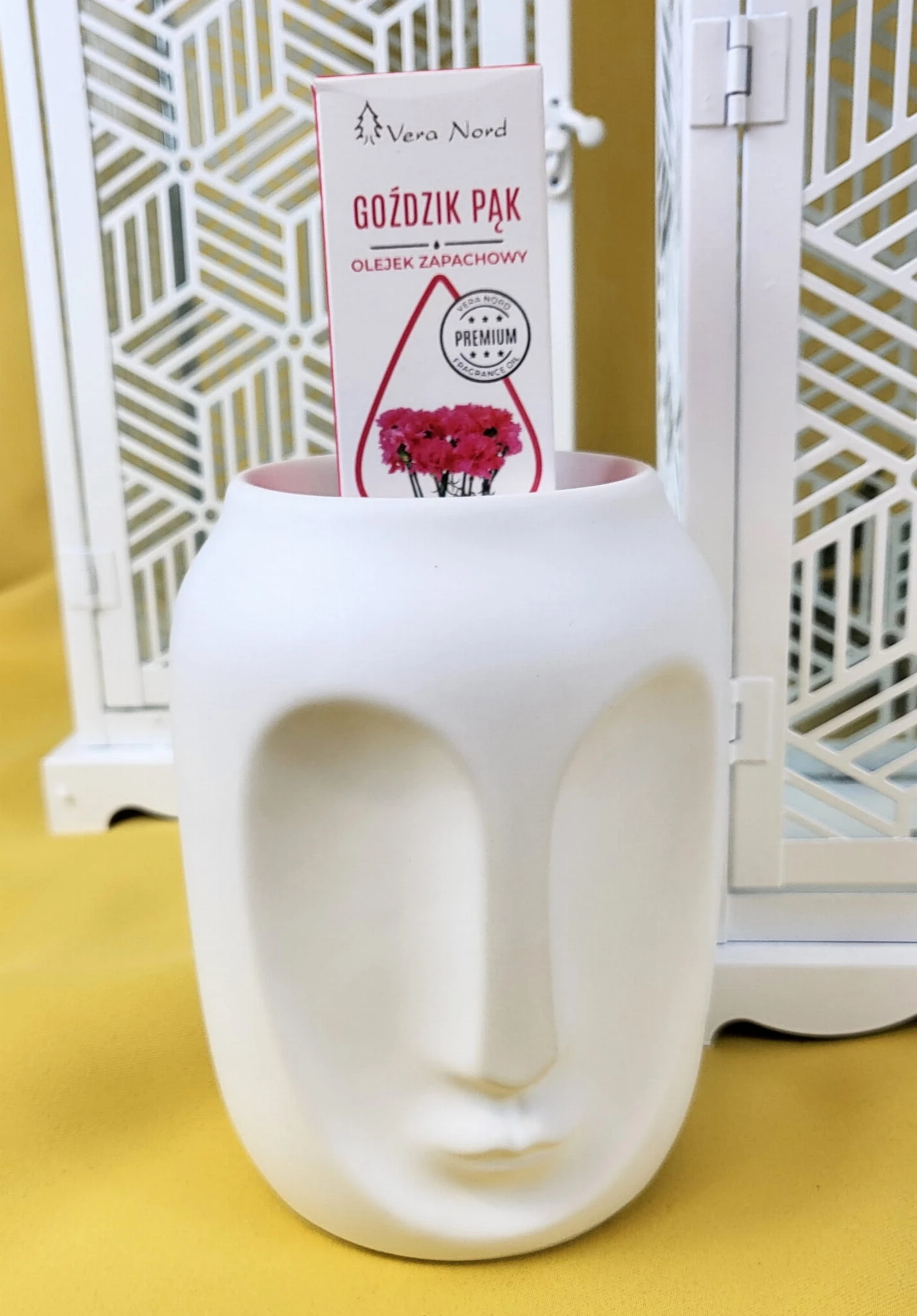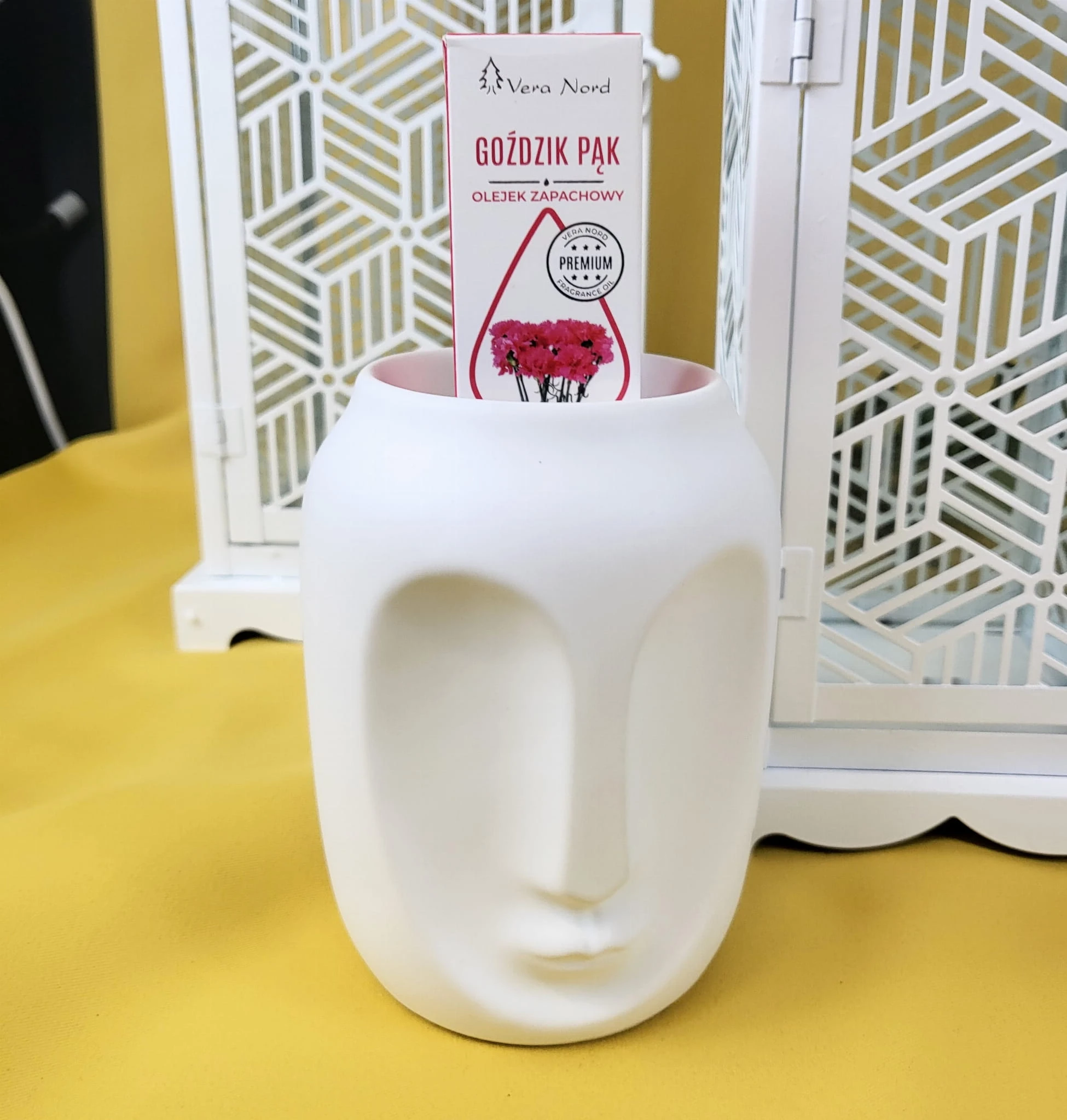 - pojemniczek na wodę w kominku aromatycznym napełnić wodą i dodać 3 - 6 kropli olejku