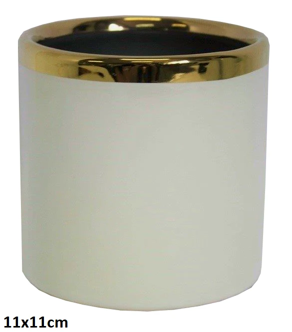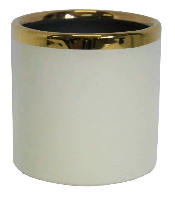 Doniczka – osłonka z ceramiki w kolorze biało-złotym