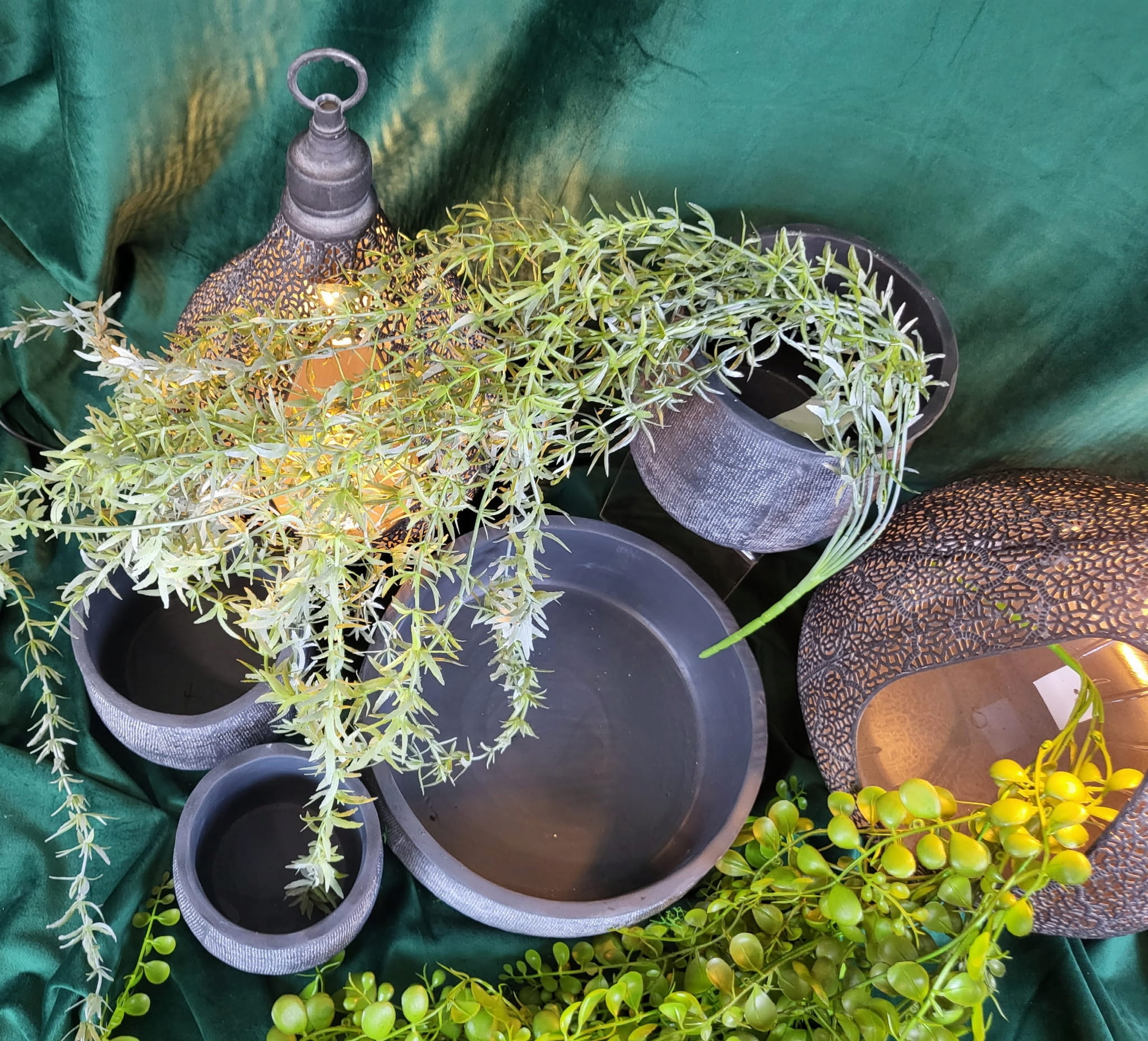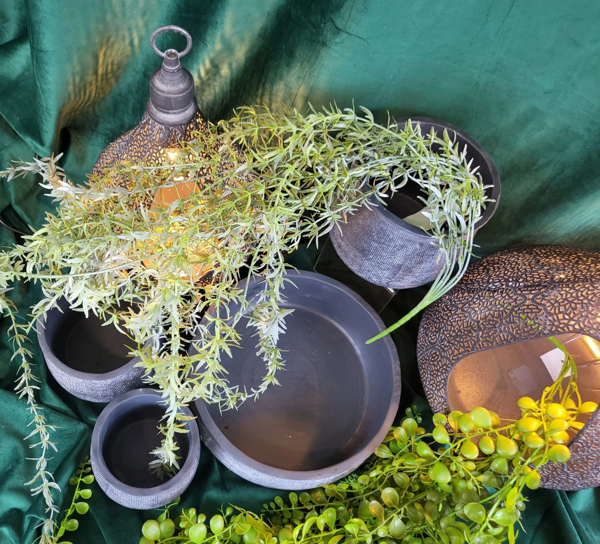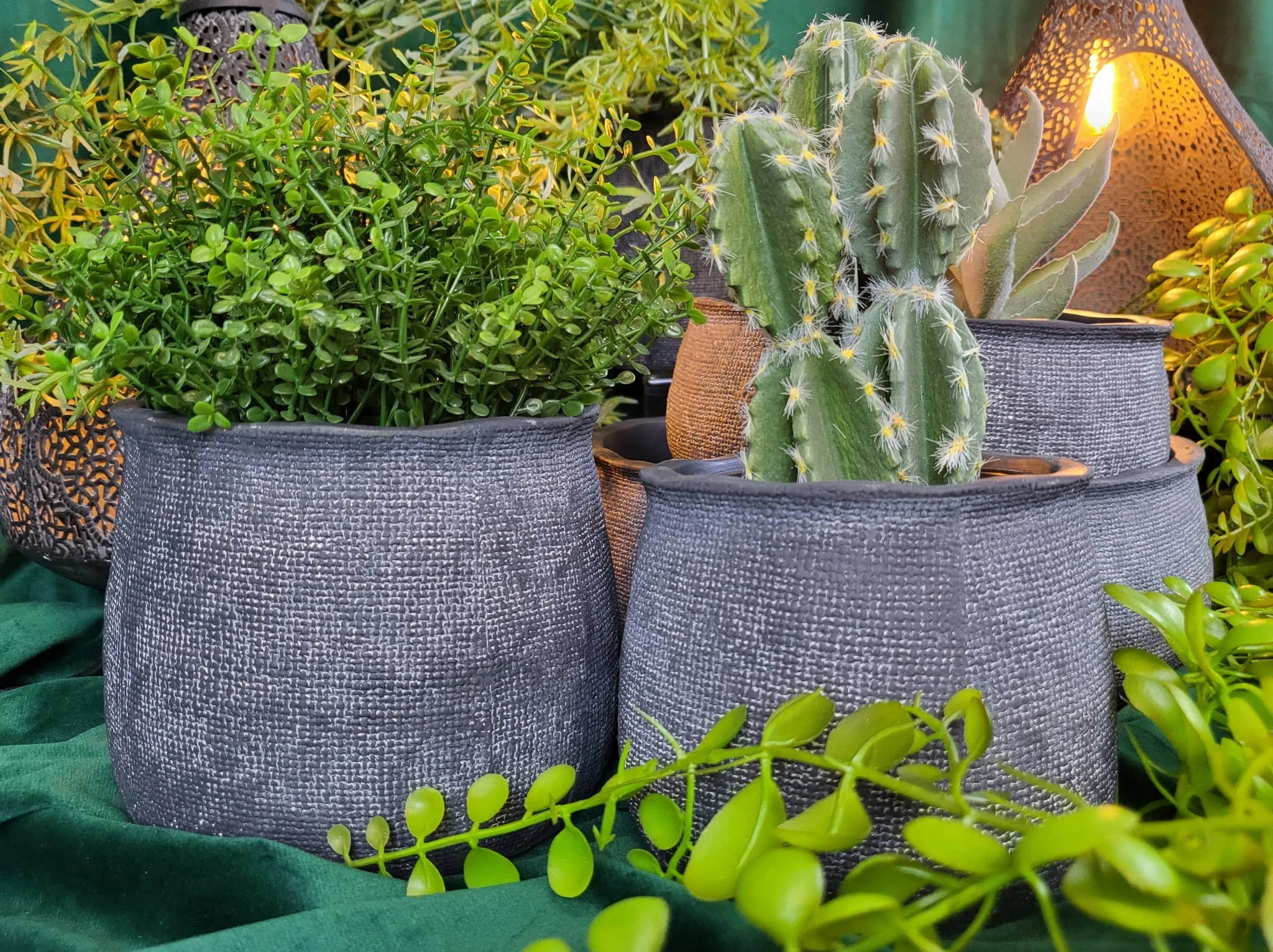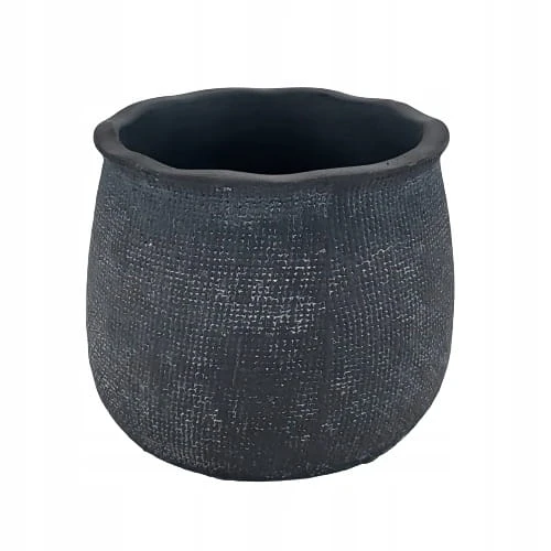 Osłonka ceramiczna w antracytowym kolorze o ciekawej strukturze. Idealnie wkomponuje się we wnętrze w stylu rustykalnym, boho jak i nowoczesne. Osłonka ozdobi biuro, salon czy sypialnię.