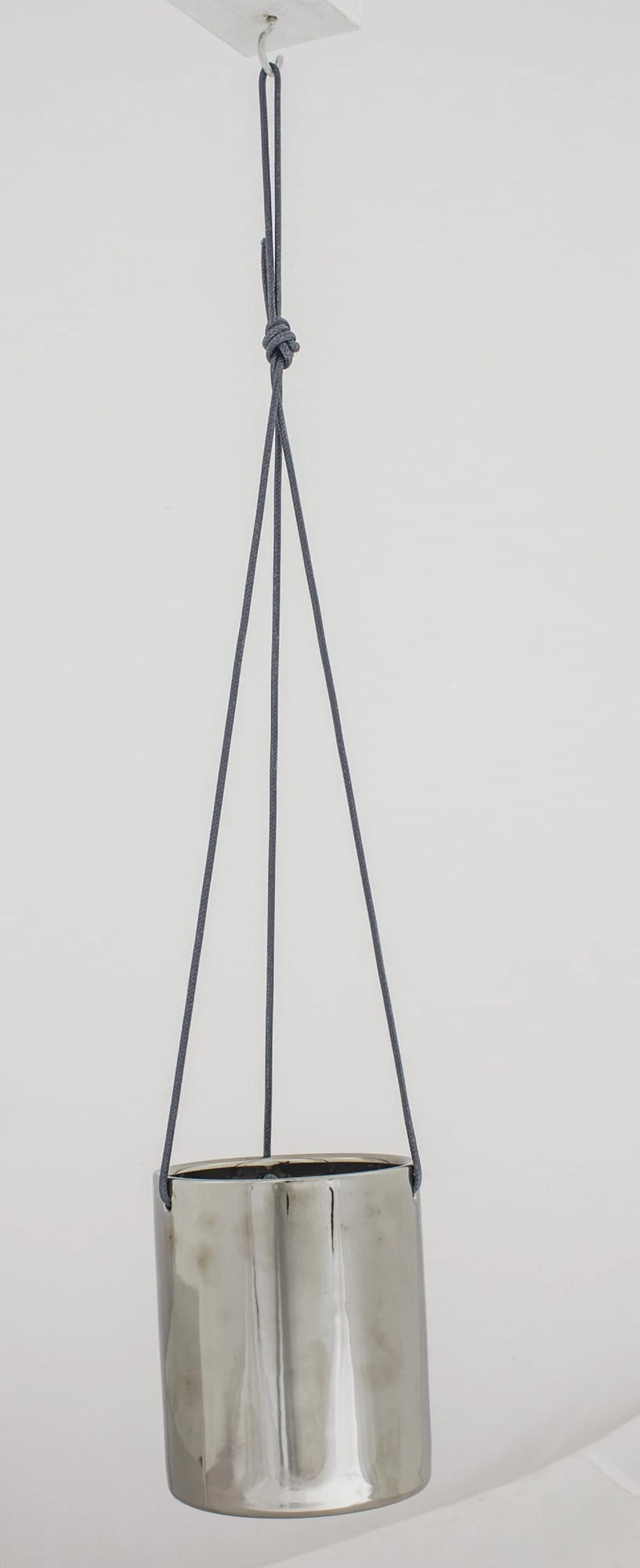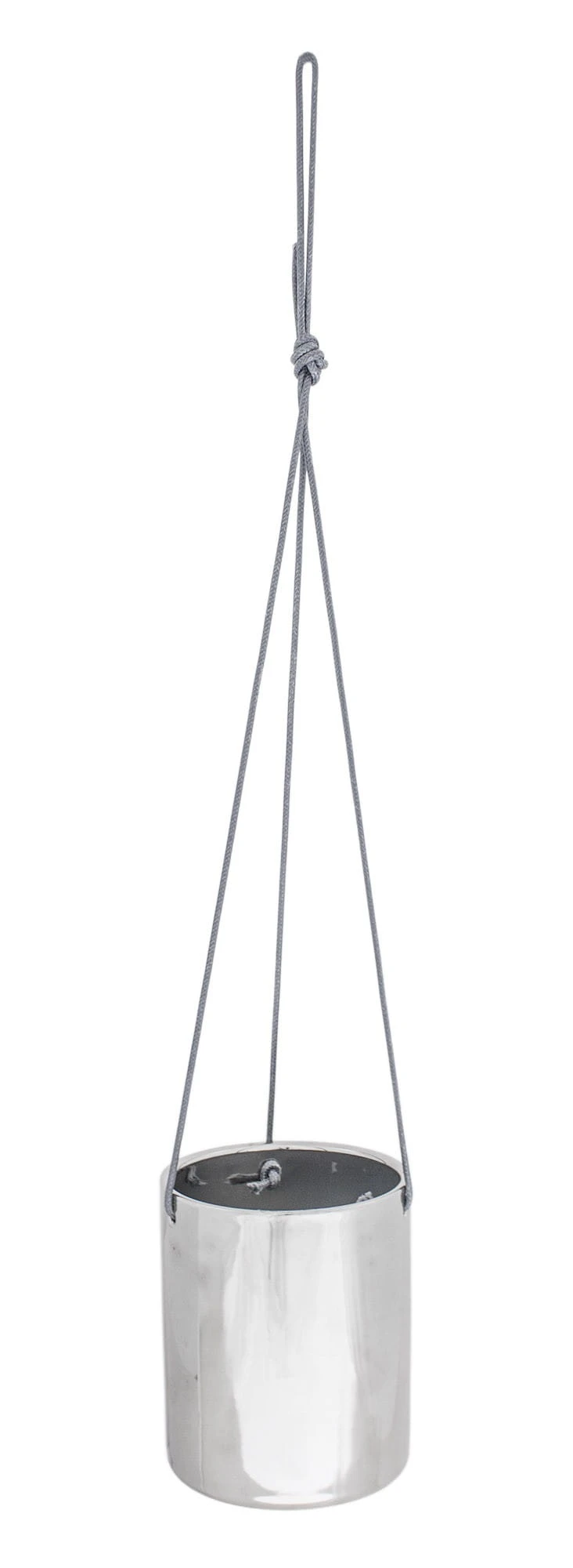 Metalowa osłonka w srebrnym kolorze z możliwością zawieszenia.