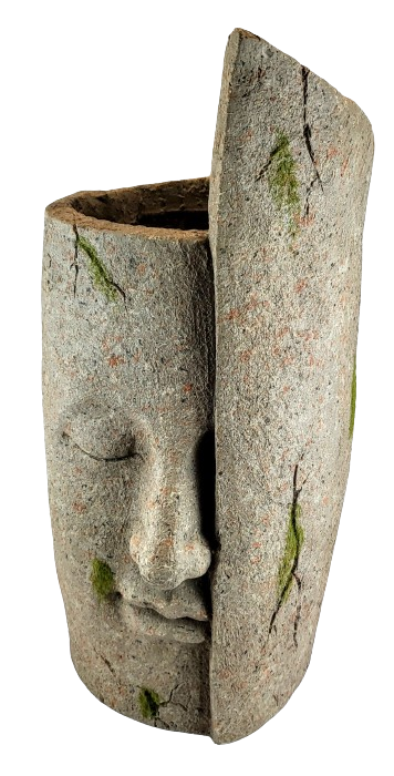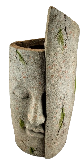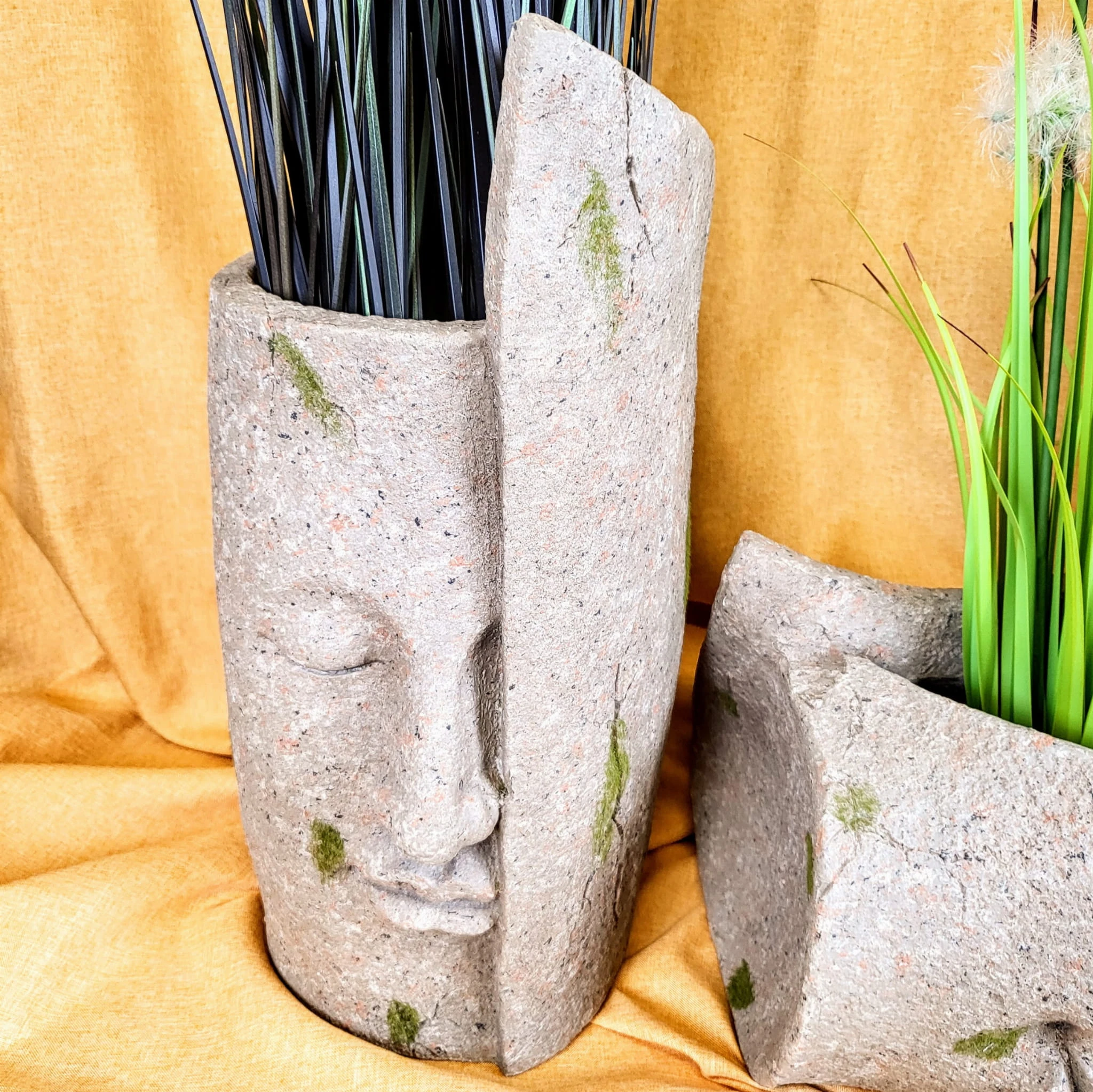 Unikatowa osłonka wykonana tak, by wyglądała na wyrzeźbioną z wapienia, realizmu dodają liczne "spękania" i imitacje mchu. Wyjątkowy wygląd doniczka zawdzięcza połączeniu w sobie stylu vintage i orientalności.
