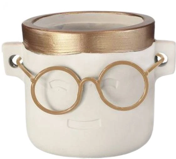 Osłonka w białym kolorze z humorystycznymi złotymi okularami. Idealnie wkomponuje się we wnętrze w stylu nowoczesnym jak i doda trochę świeżości w każde inne wnętrze. Osłonka ozdobi biuro, salon czy sypialnię.