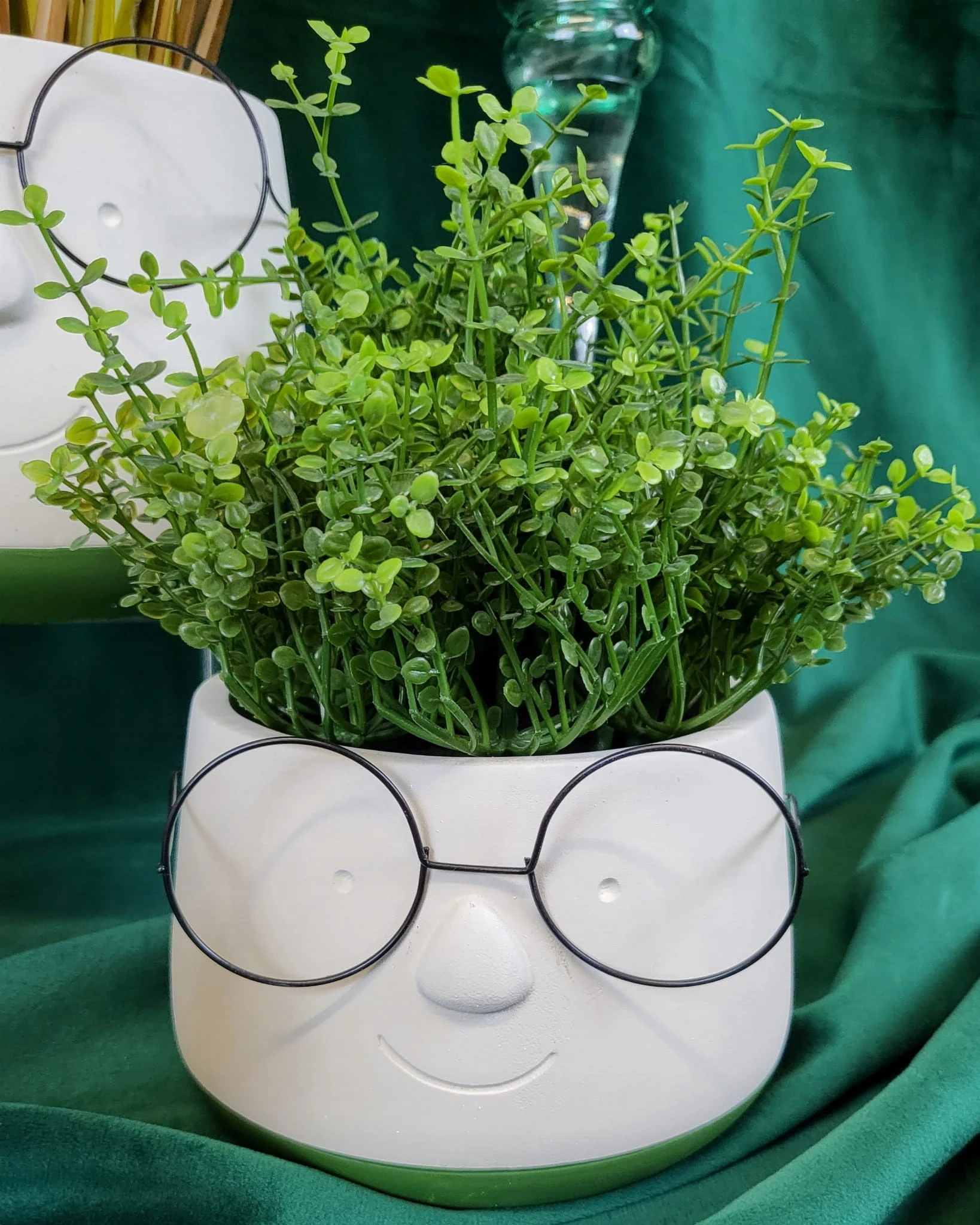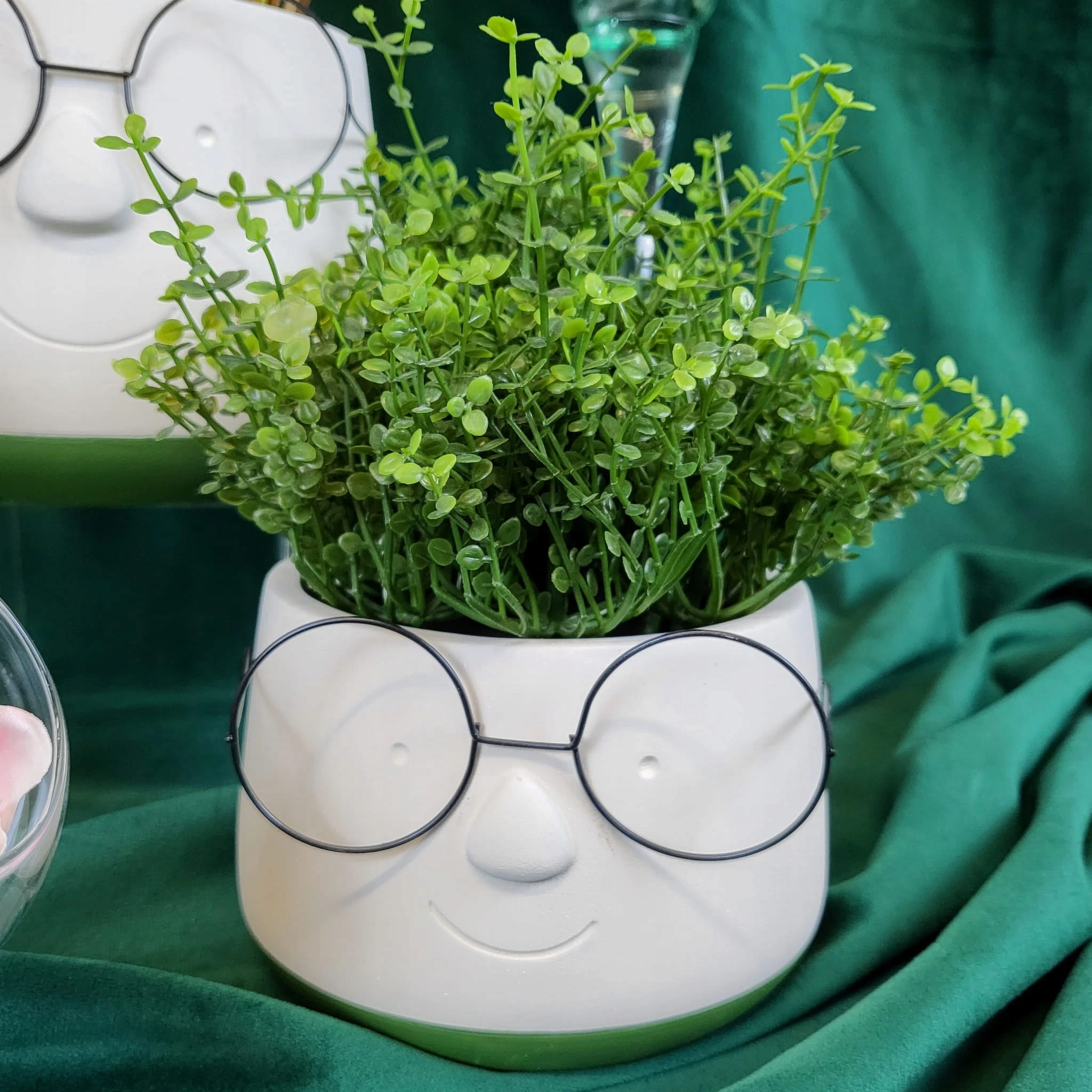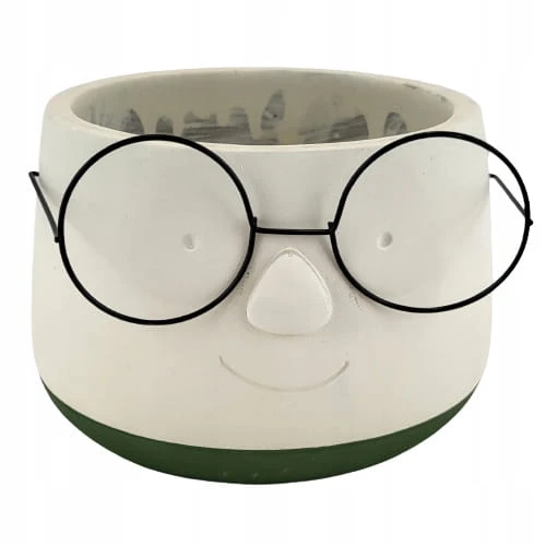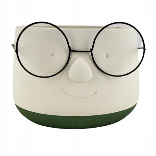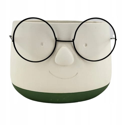 Osłonka ceramiczna w białym kolorze z humorystycznymi okularami. Idealnie wkomponuje się we wnętrze w stylu nowoczesne jak i doda trochę świeżości w każde inne wnętrze. Osłonka ozdobi biuro, salon czy sypialnię.