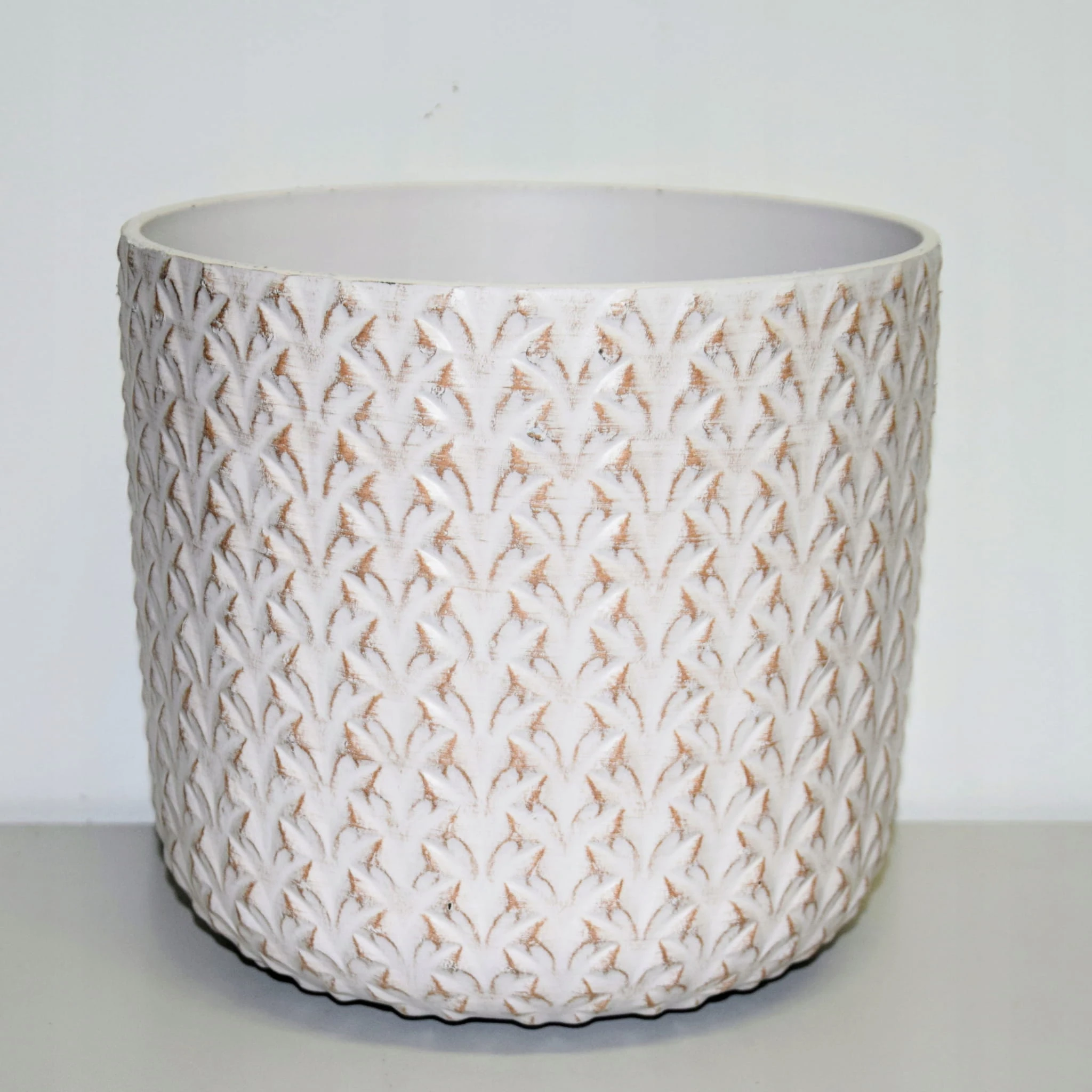 OSŁONKA/DONICA BIAŁA (ECRU) PRZECIERANA WYKONANA Z EKO PLASTIKU.