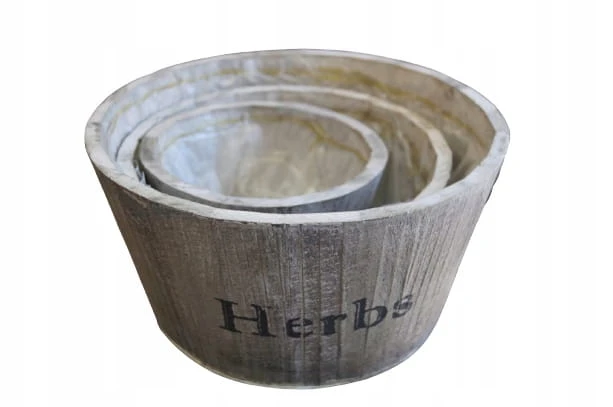 Wyłożone od wewnątrz folią zapobiegającą zawilgoceniu drewna, osłonki w stylu prowansalskim, to wspaniałe, pochodzące z naturalnych materiałów, elementy dekoracyjne wnętrza i ogrodu. Napis Herbs może sugerować iż są to osłonki na zioła, jednak Ty możesz wykorzystać je w sposób, który najbardziej Ci odpowiada. Osłonki drewniane - twoja droga do pięknego wnętrza!