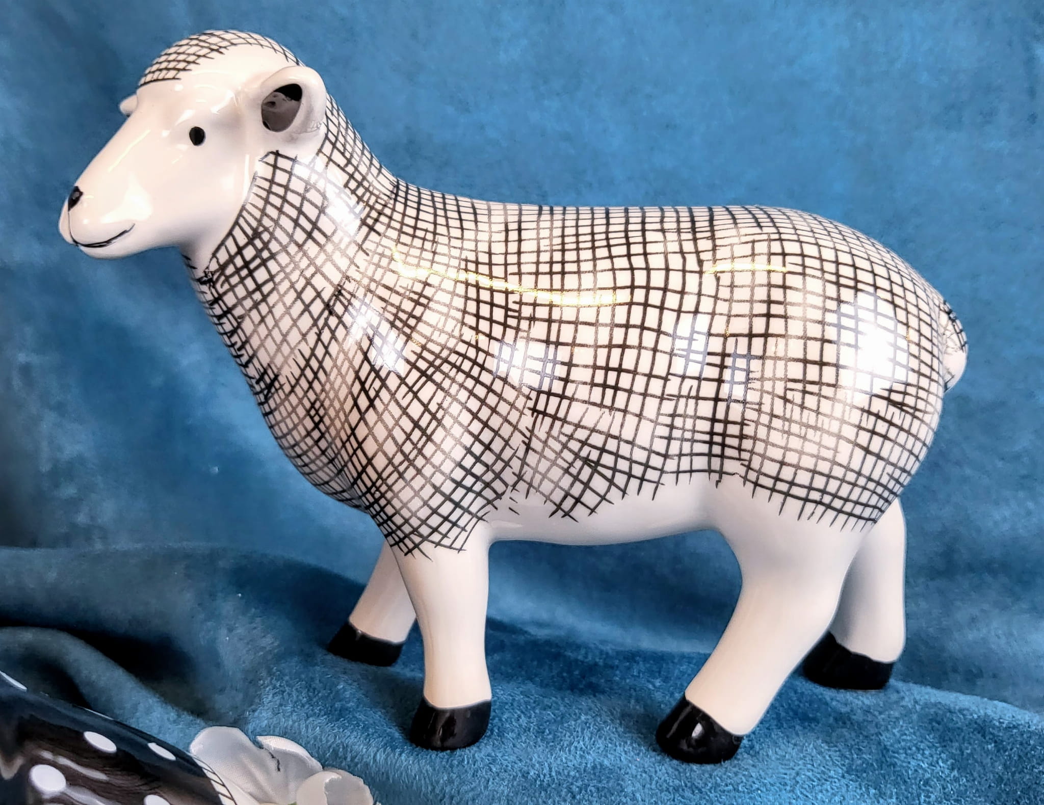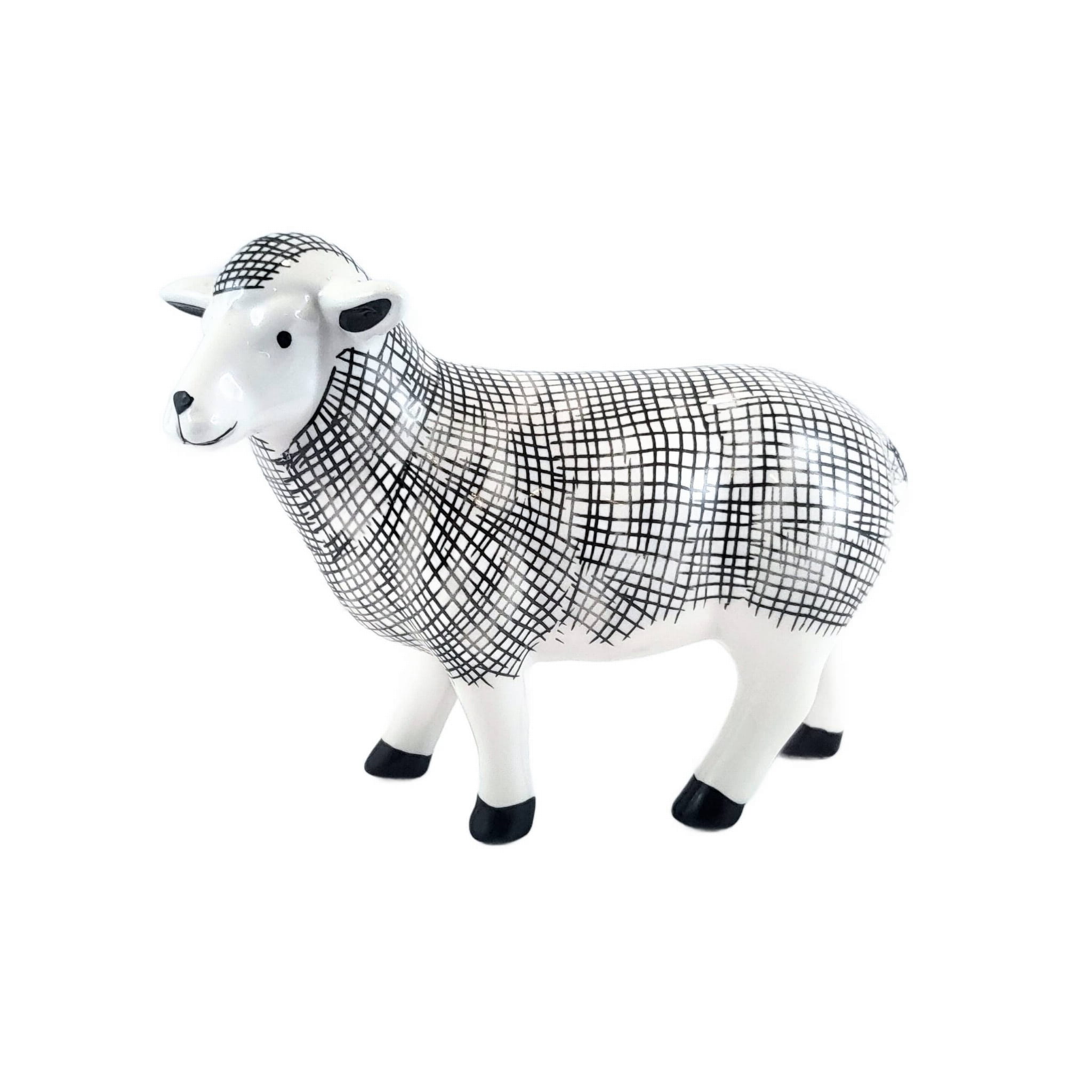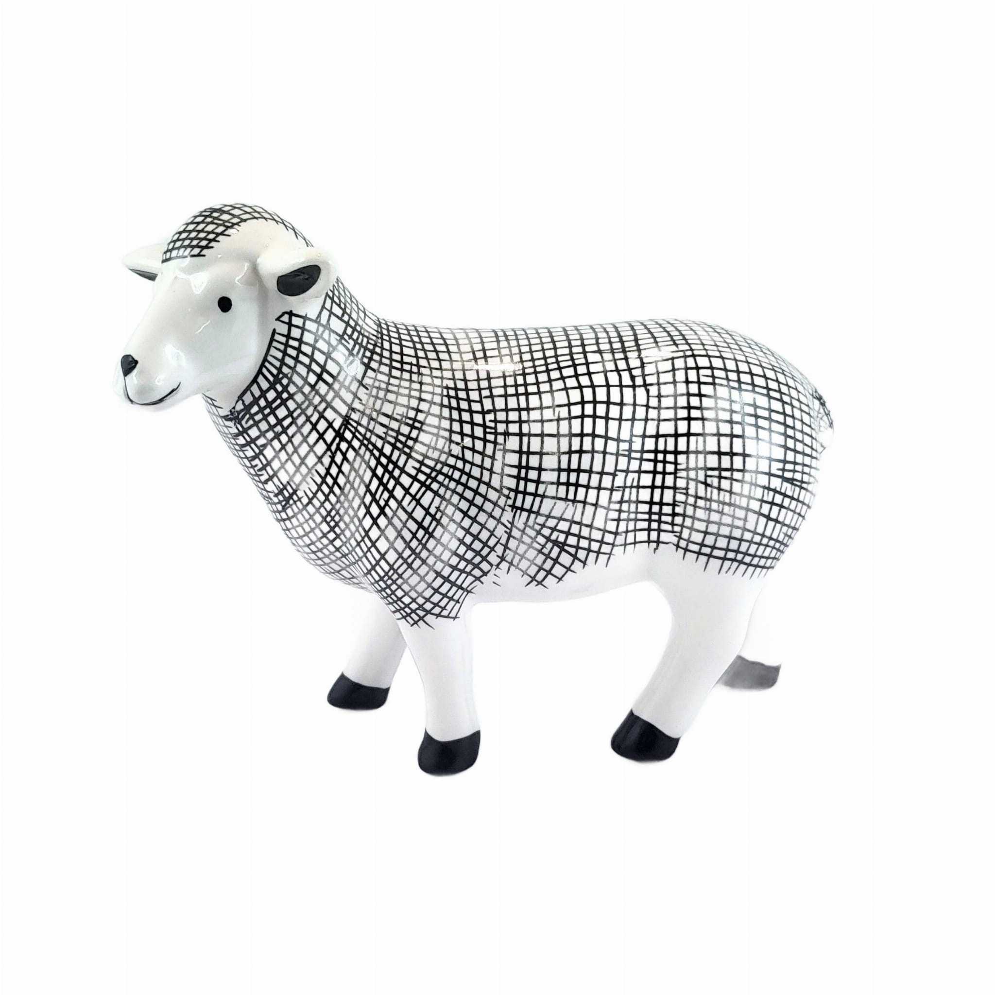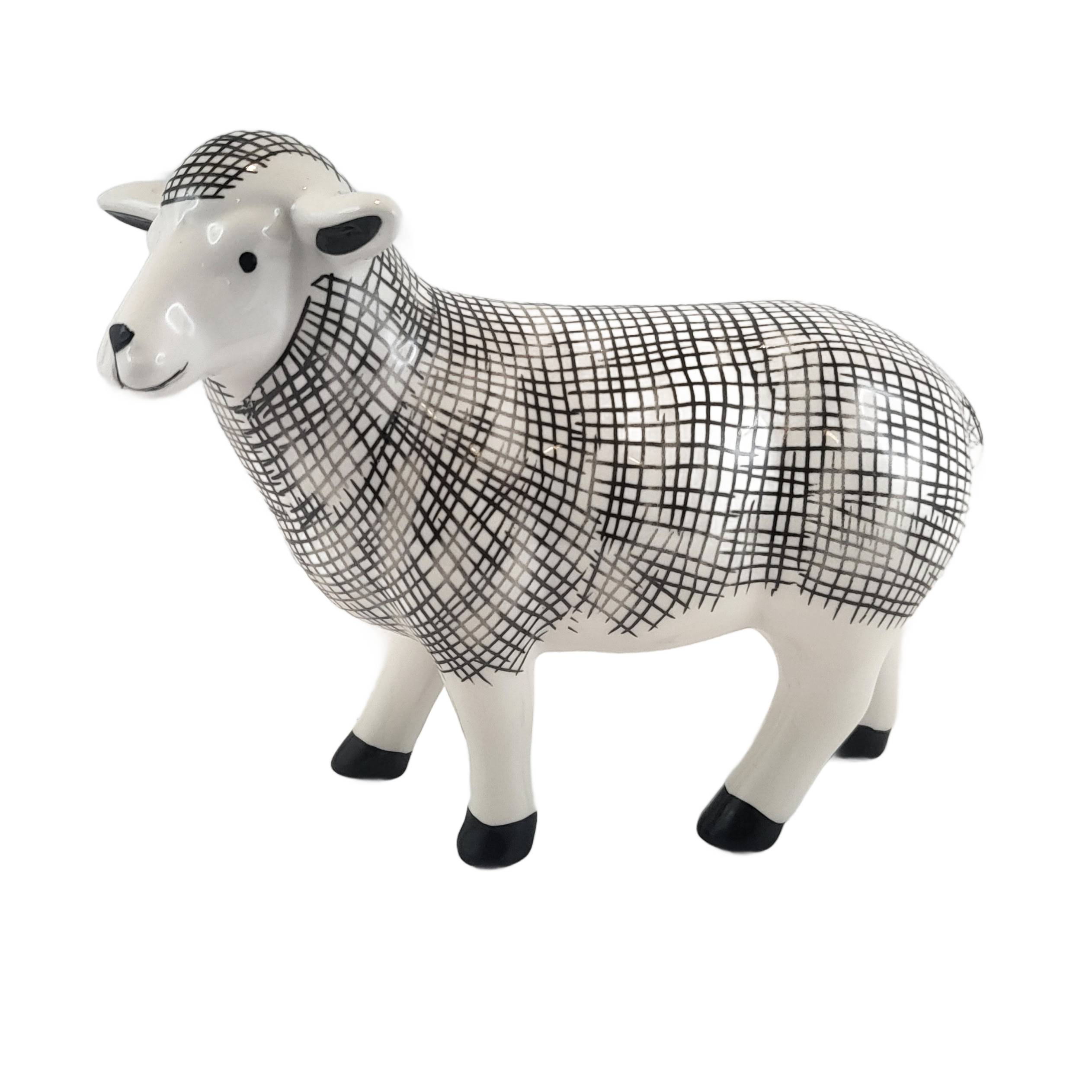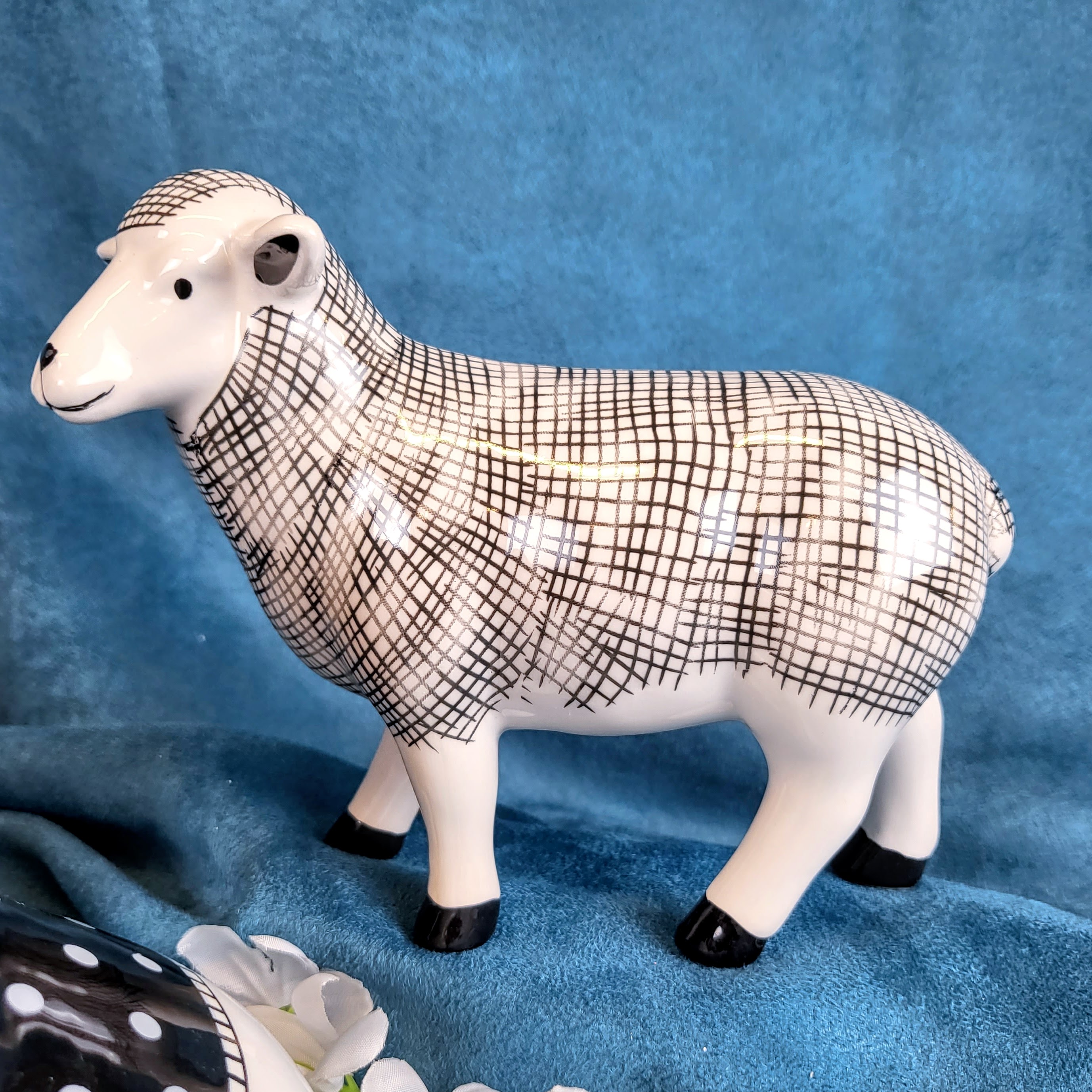 Sympatyczna owieczka w karatkę. Idealna na wielkanocny stół i do wielu innych aranżacji. Oryginalny pomysł na prezent.