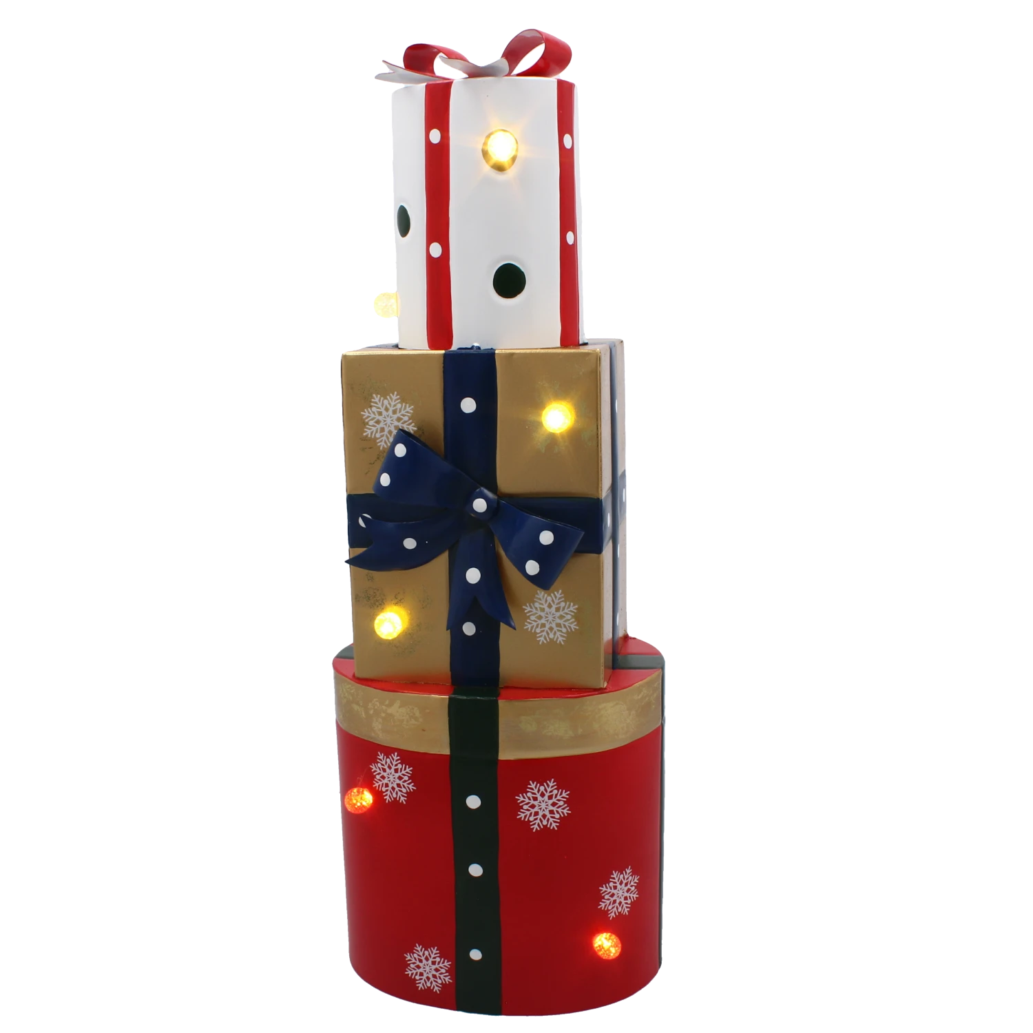 OZDOBA BOŻONAR. METALOWE PREZENTY MIX KSZTAŁTÓW LED 18x13x50CM