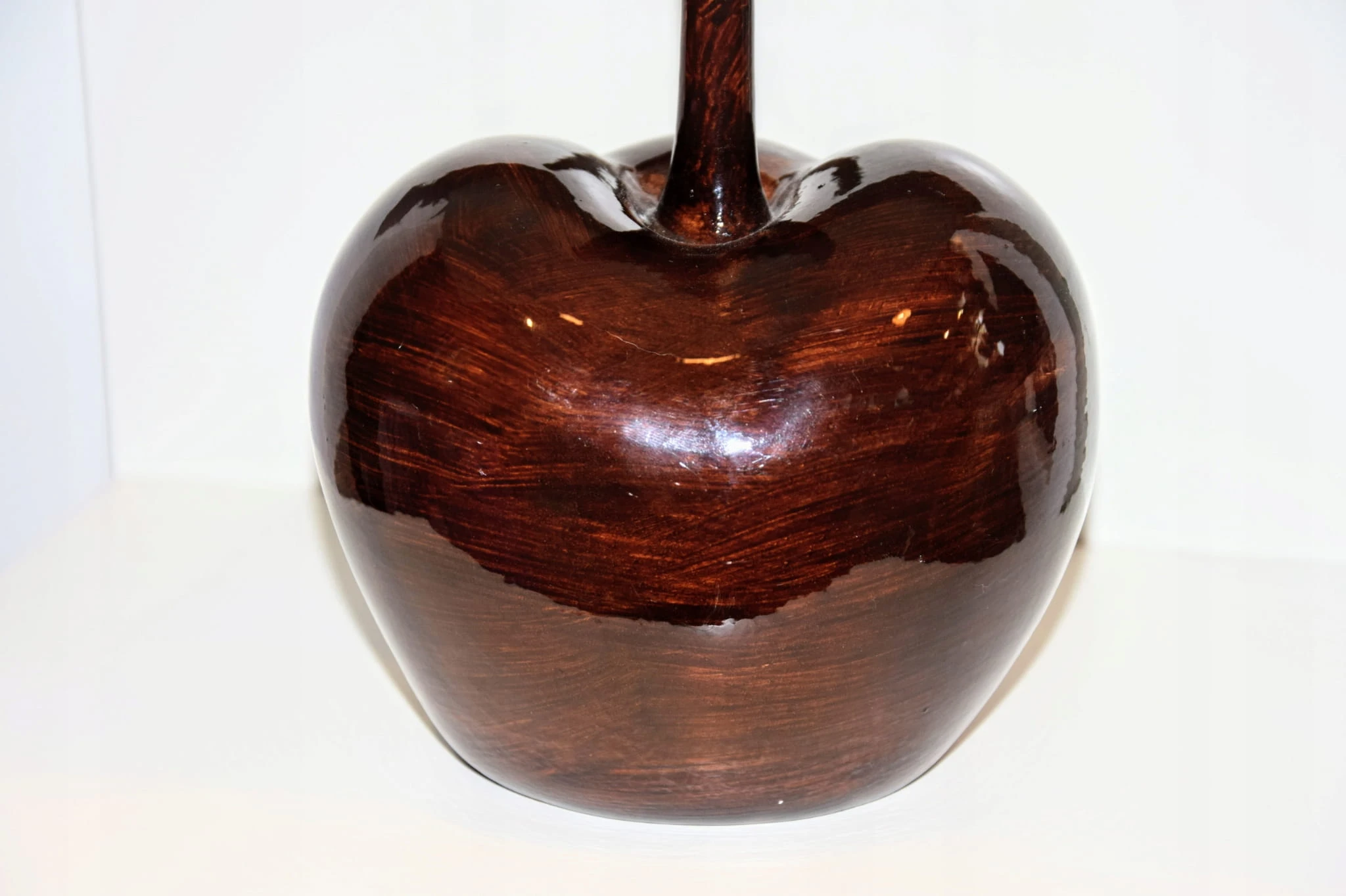 - Piękne ceramiczne jabłko w odcieniach brązu.