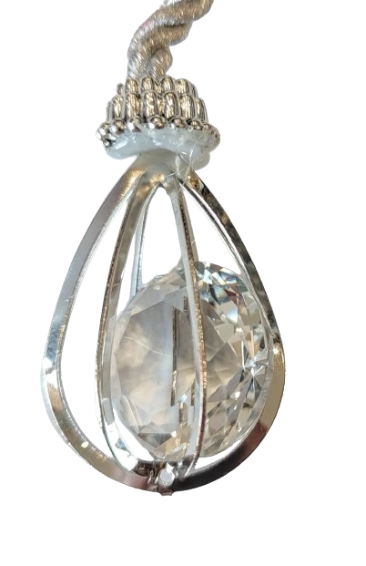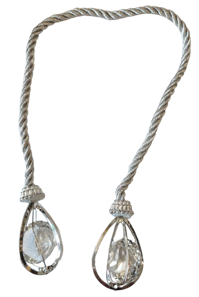 Ozdobny sznur z dekoracyjnym zakończeniem wypełnionym akrylowym diamentem.