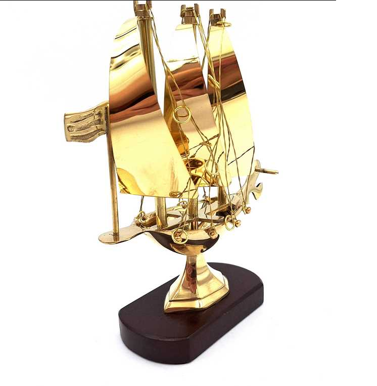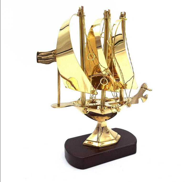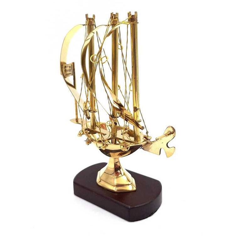 Okręt mosiężny na podstawie drewnianej 20 cm