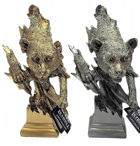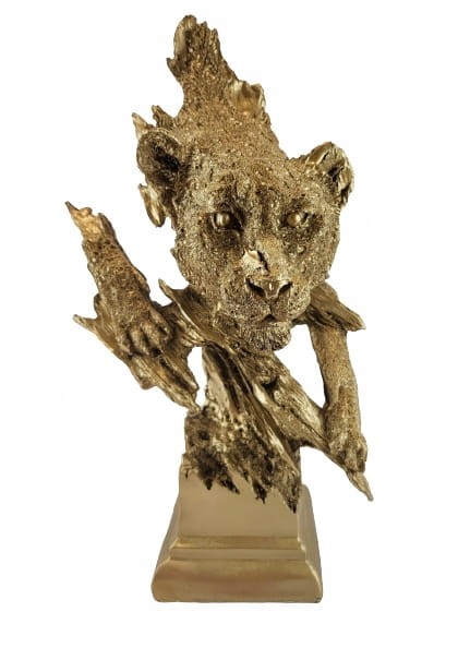 Postaw rzeźbę w salonie na stoliku by urozmaić wnętrze. Oryginalna figura zwraca uwagę precyzyjnym wykonaniem oraz teatralną formą. Figura w stylu vintage doskonale będzie wyglądać w Twoim biurze na półce. Ciekawa figurka, którą warto umieścić w pokoju dziecka na biurku lub półce. Złota wysoka rzeźba to ciekawa propozycja na prezent.