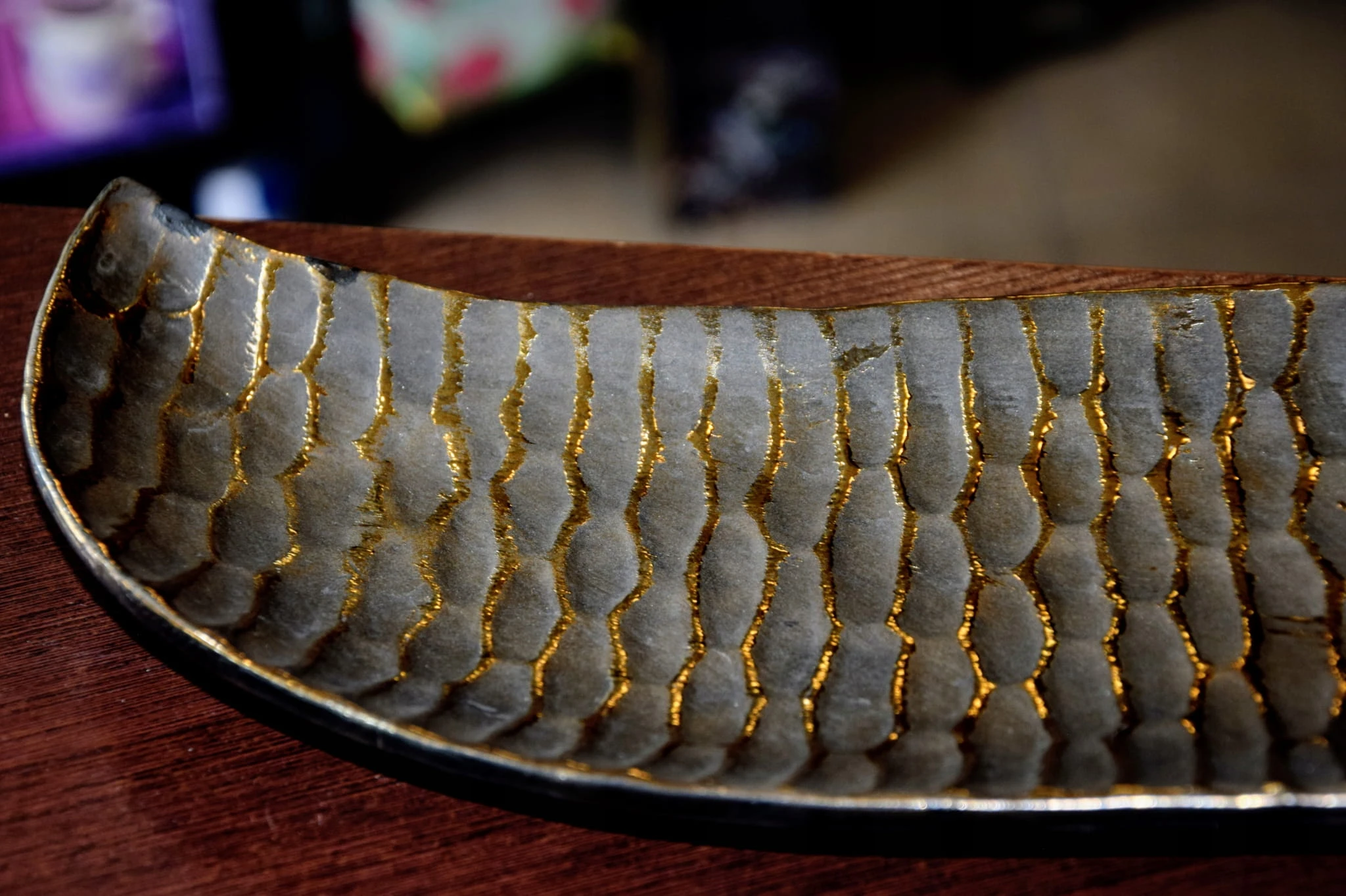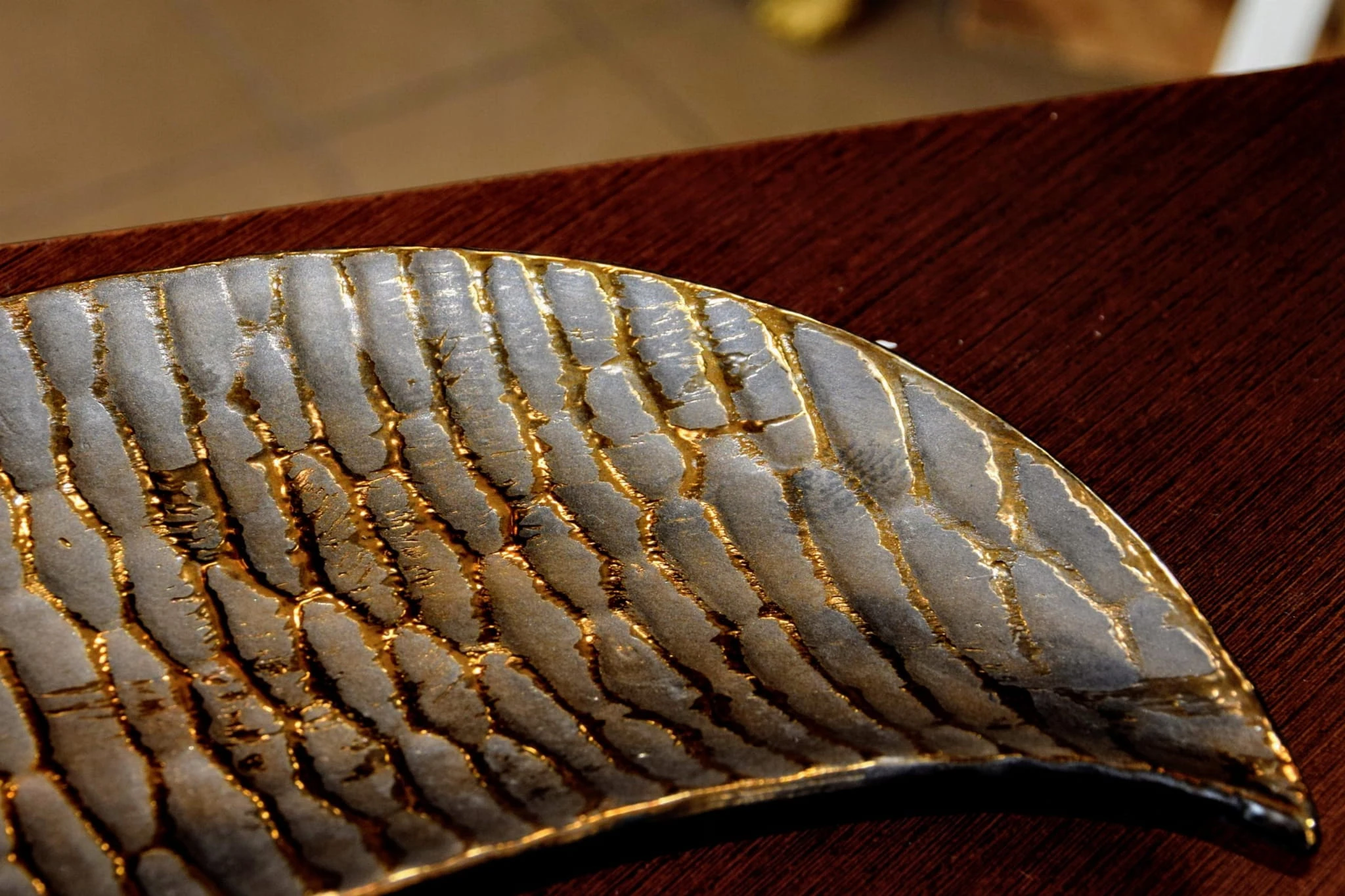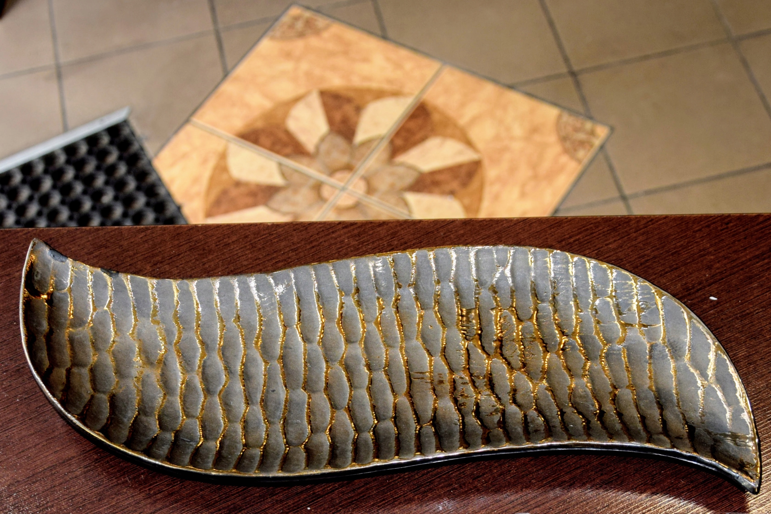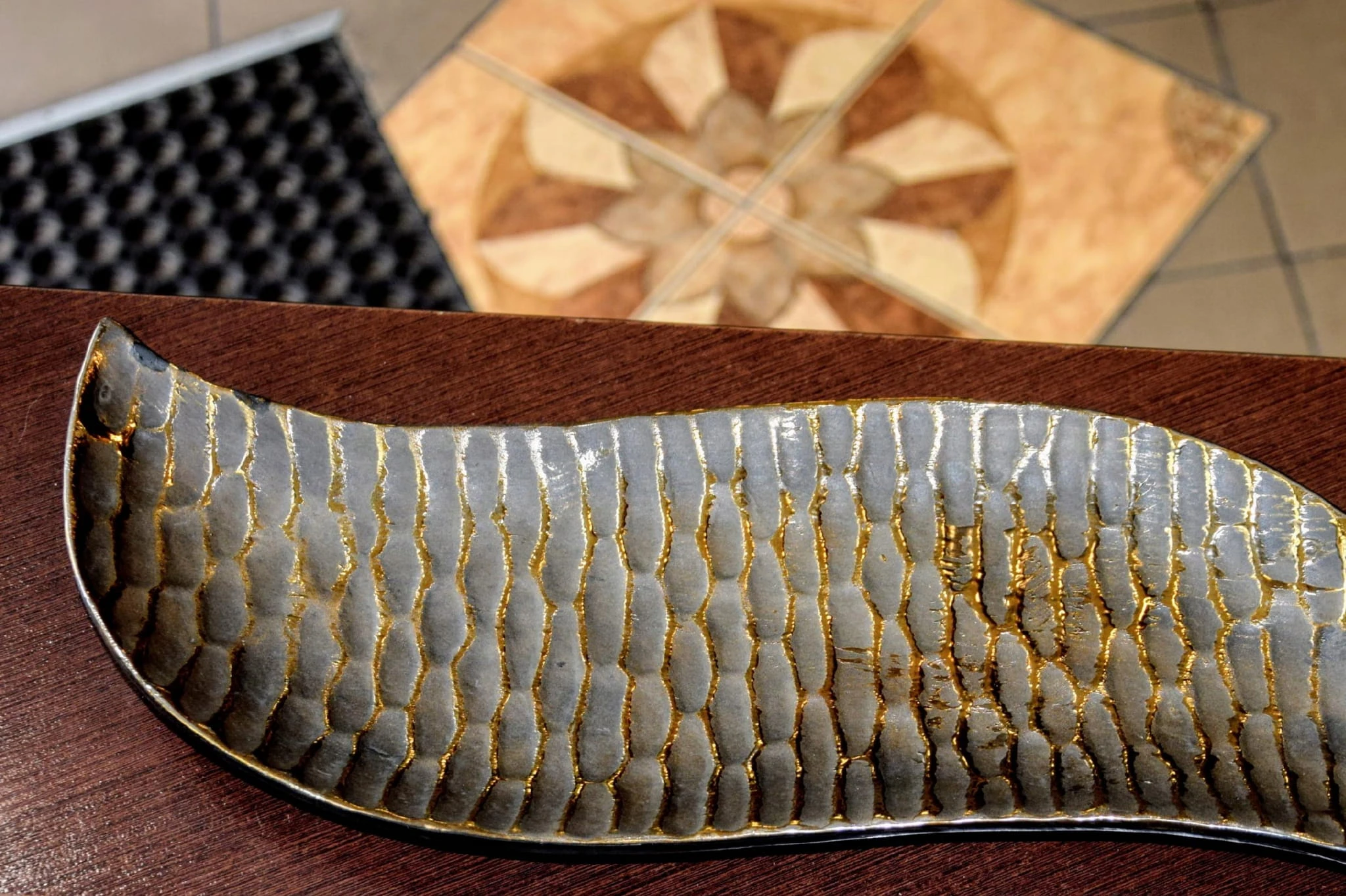 Podłużna patera ze strukturalną powierzchnią.