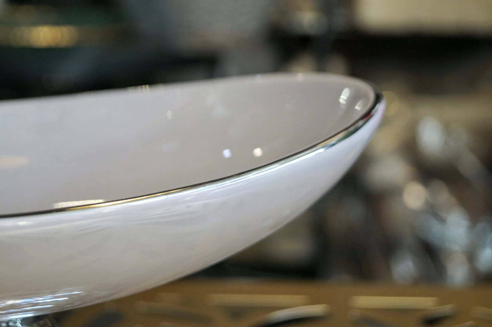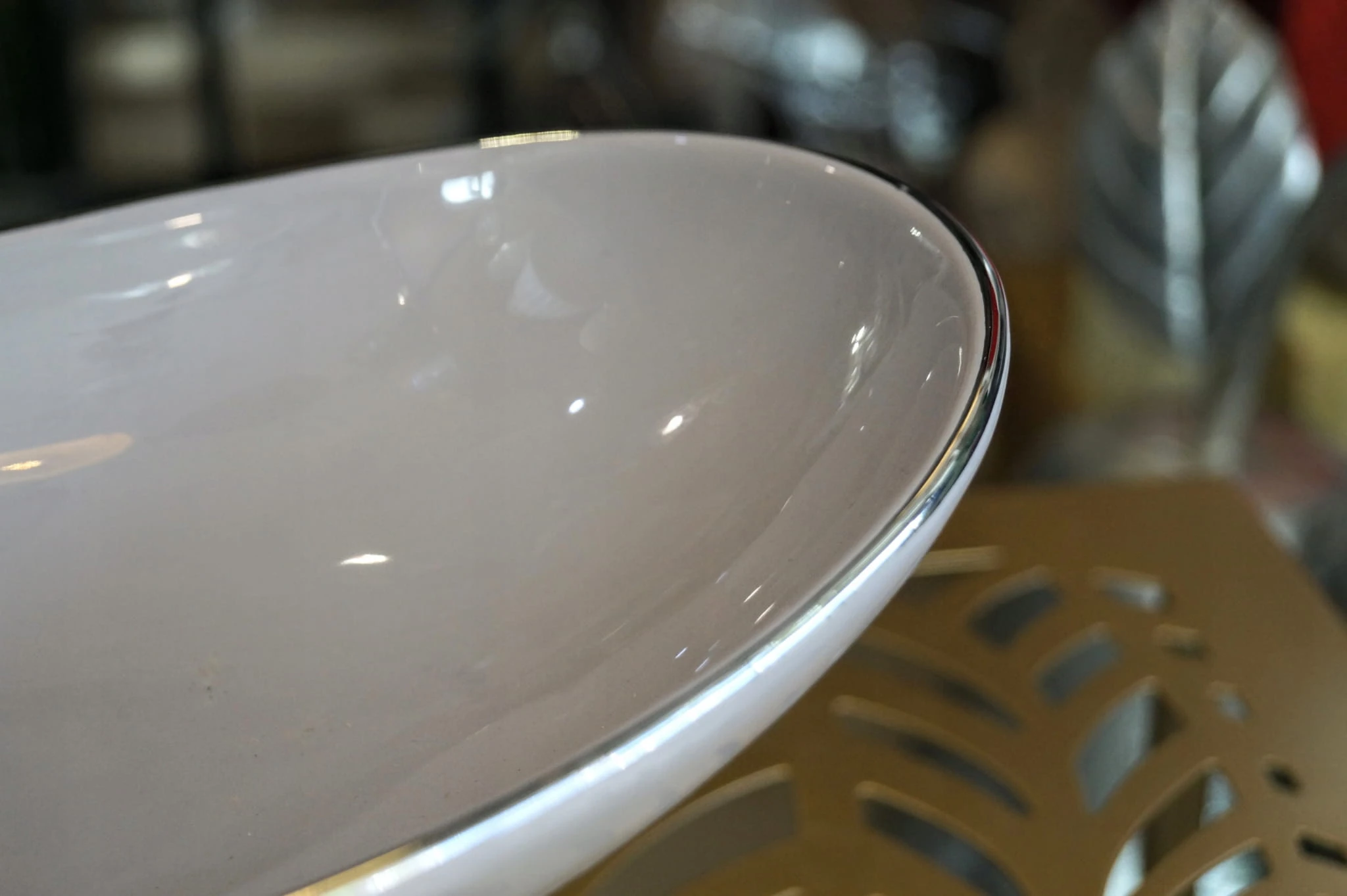Patera ceramiczna owalna kawa z mlekiem ŚREDNIA ze srebrnym paskiem.