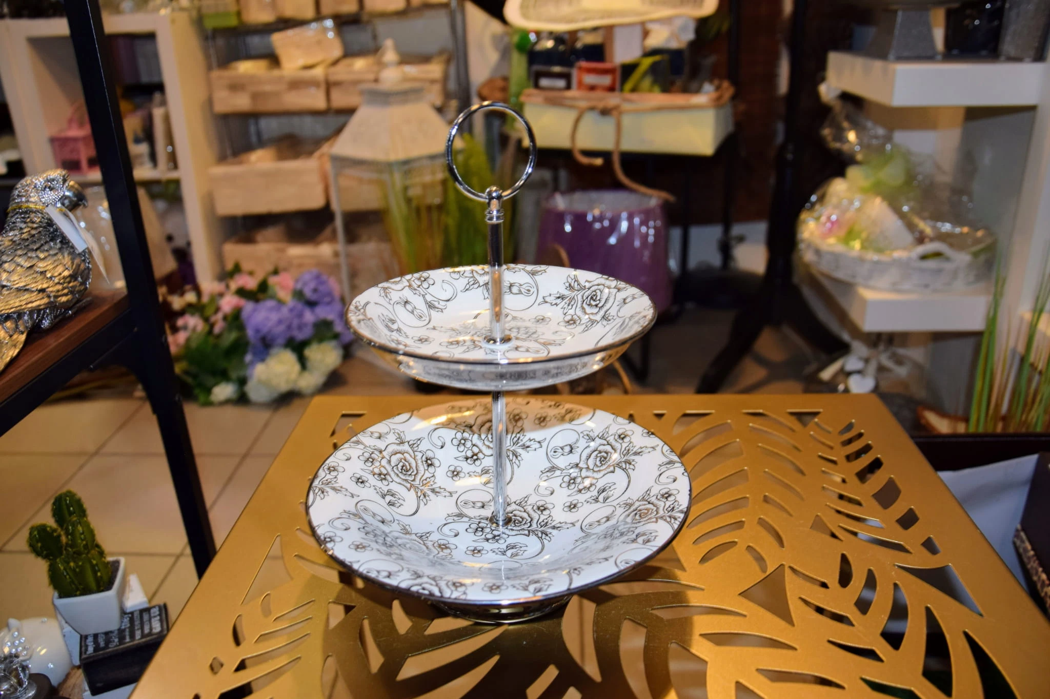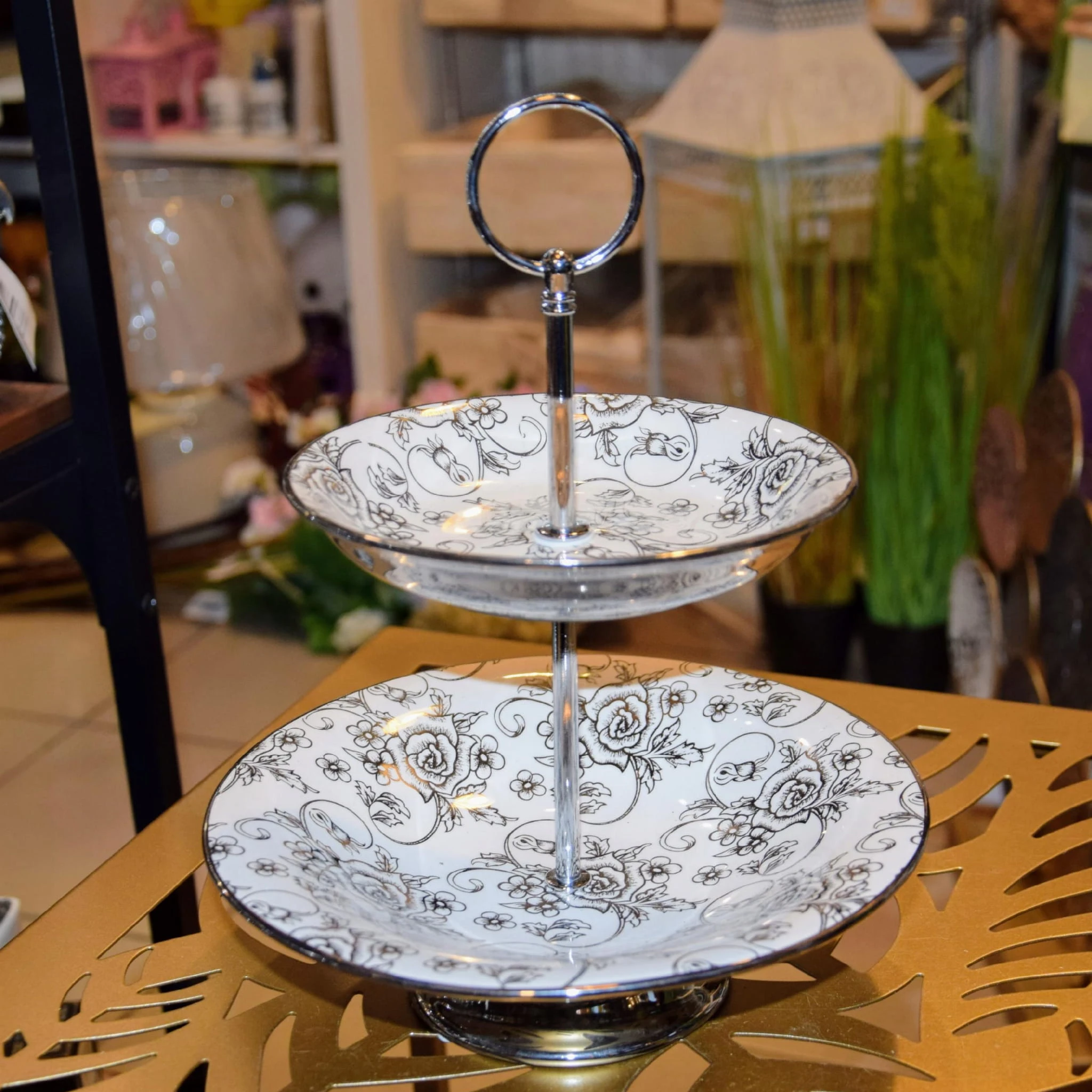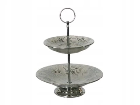 Klasyczna patera zdobiona subtelnym kwiecistym wzorem, można ją wykorzystać do ciast jak i małych słodkości.