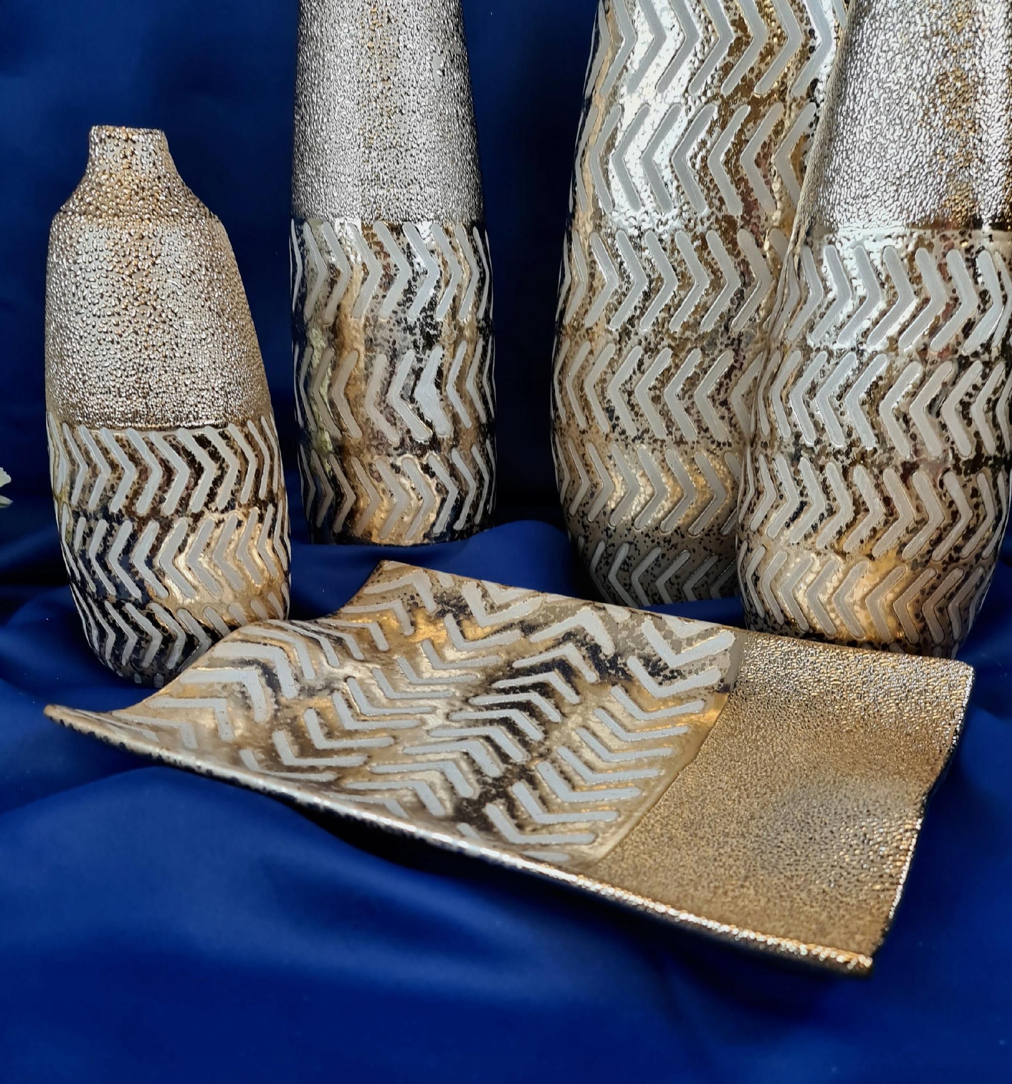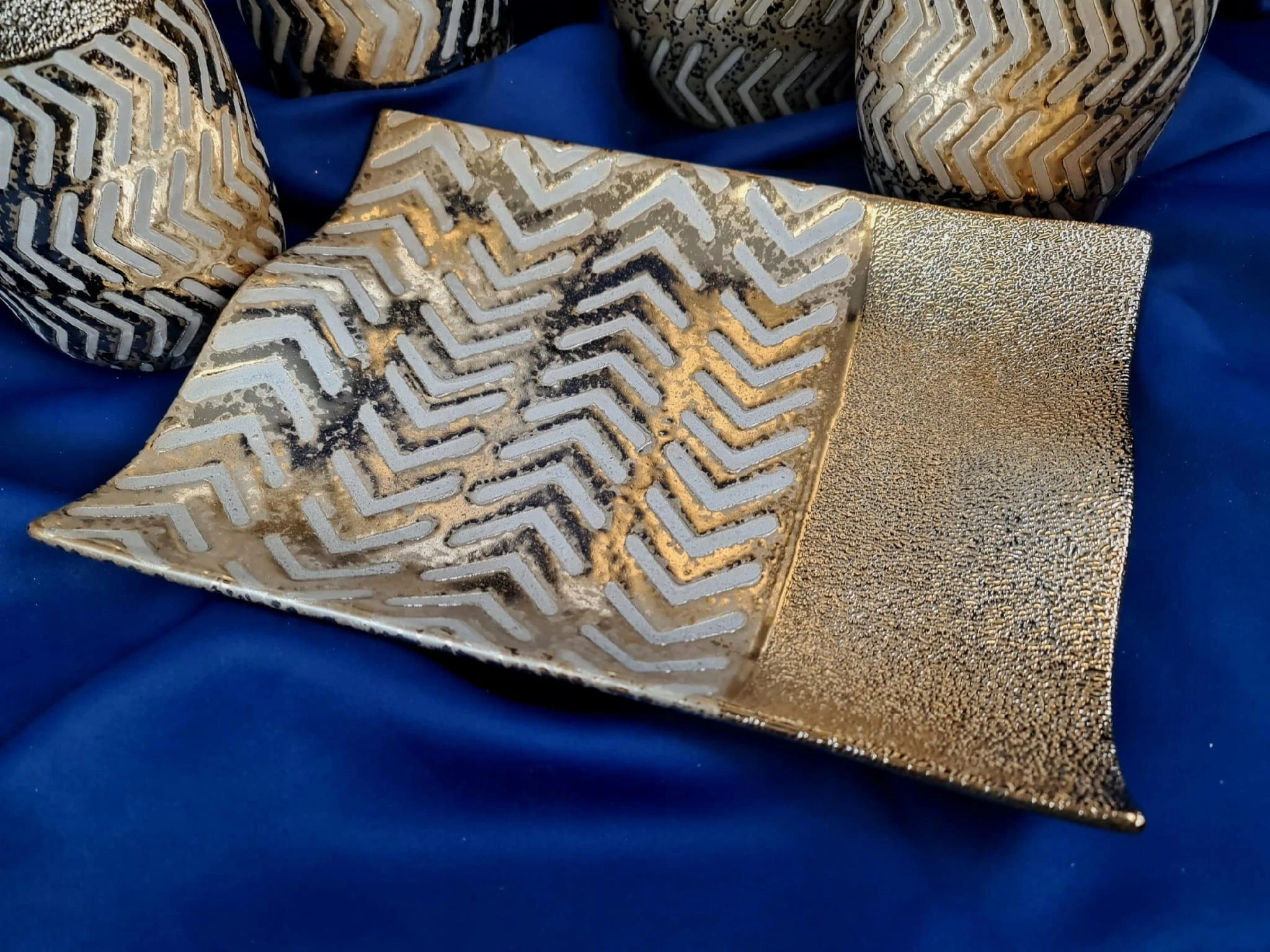 Podłużna patera ze strukturalną powierzchnią. Idealnie wkomponuje się w większość wnętrz, od orientalnych po klasyczne.