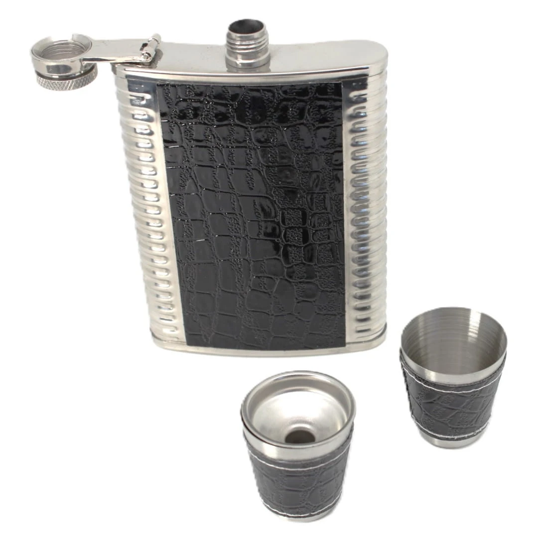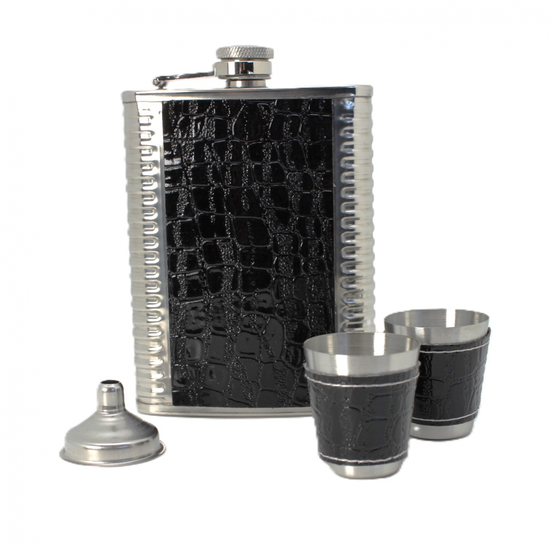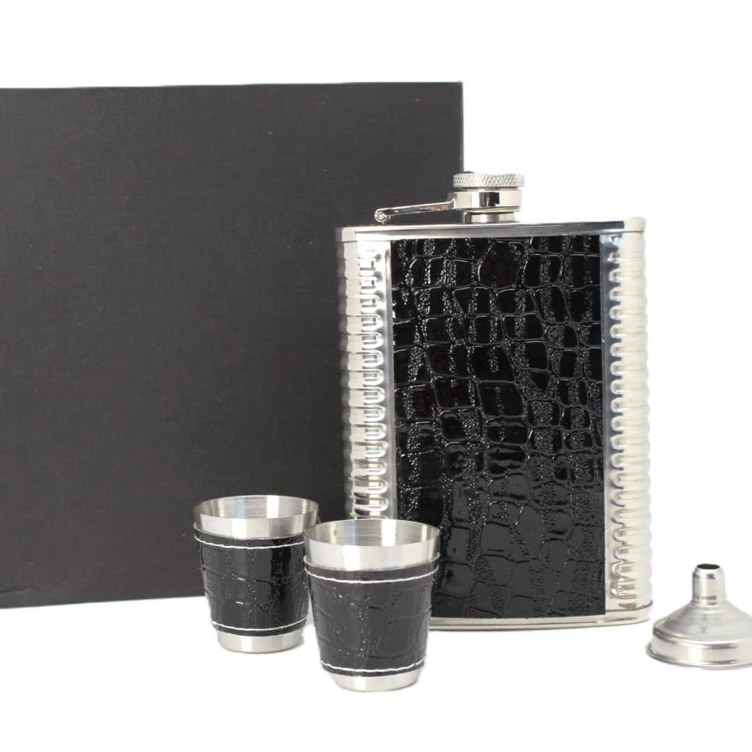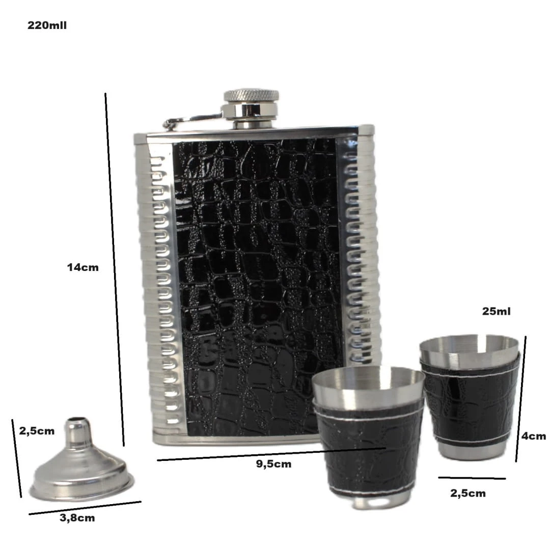 Przedstawiamy elegancką piersiówkę wraz z kieliszkami, idealną na prezent. Wysoka jakość wykonania oraz elegancki design sprawiają, że piersiówka z kieliszkami w prezentowym opakowaniu będzie nie tylko praktycznym, ale i pięknym upominkiem.
