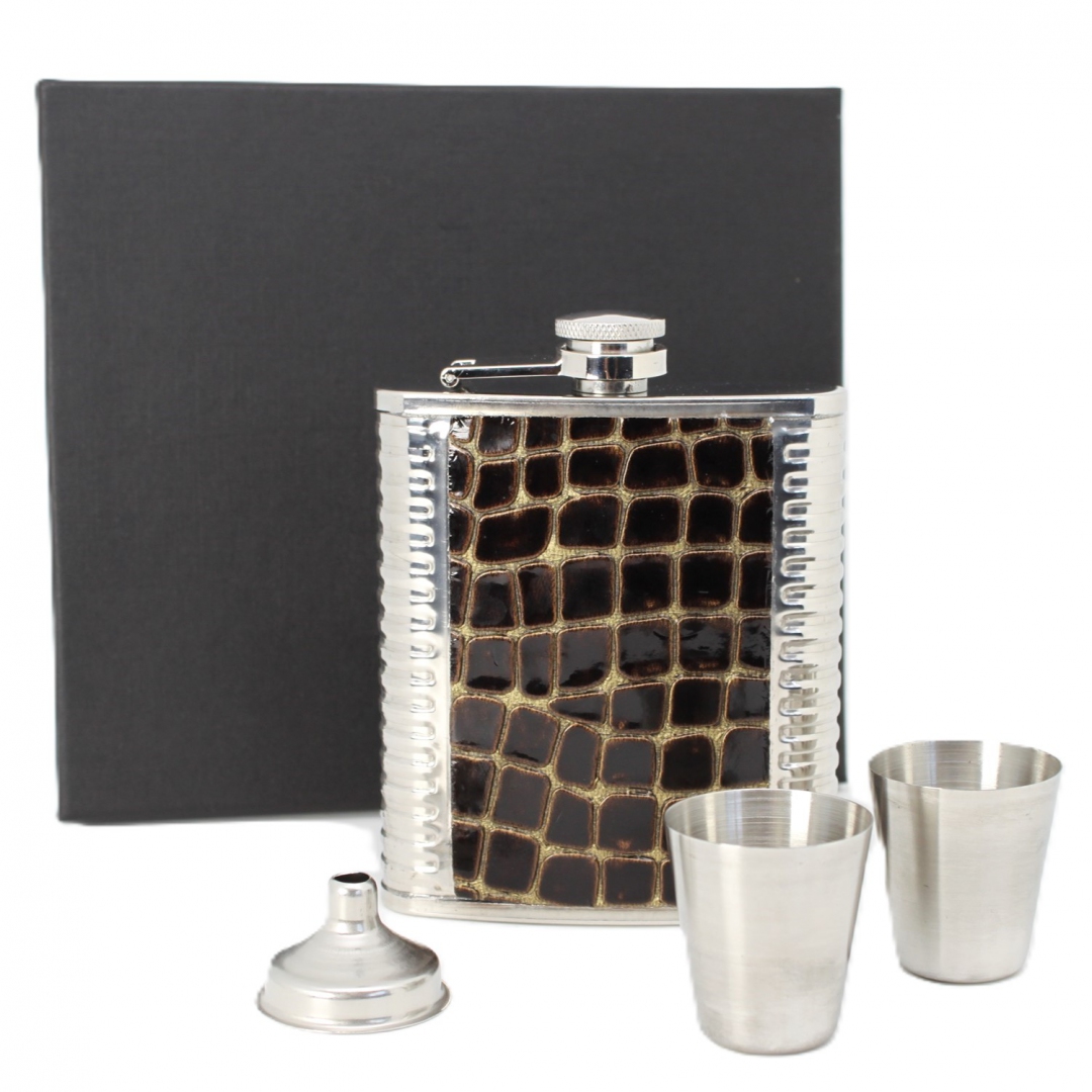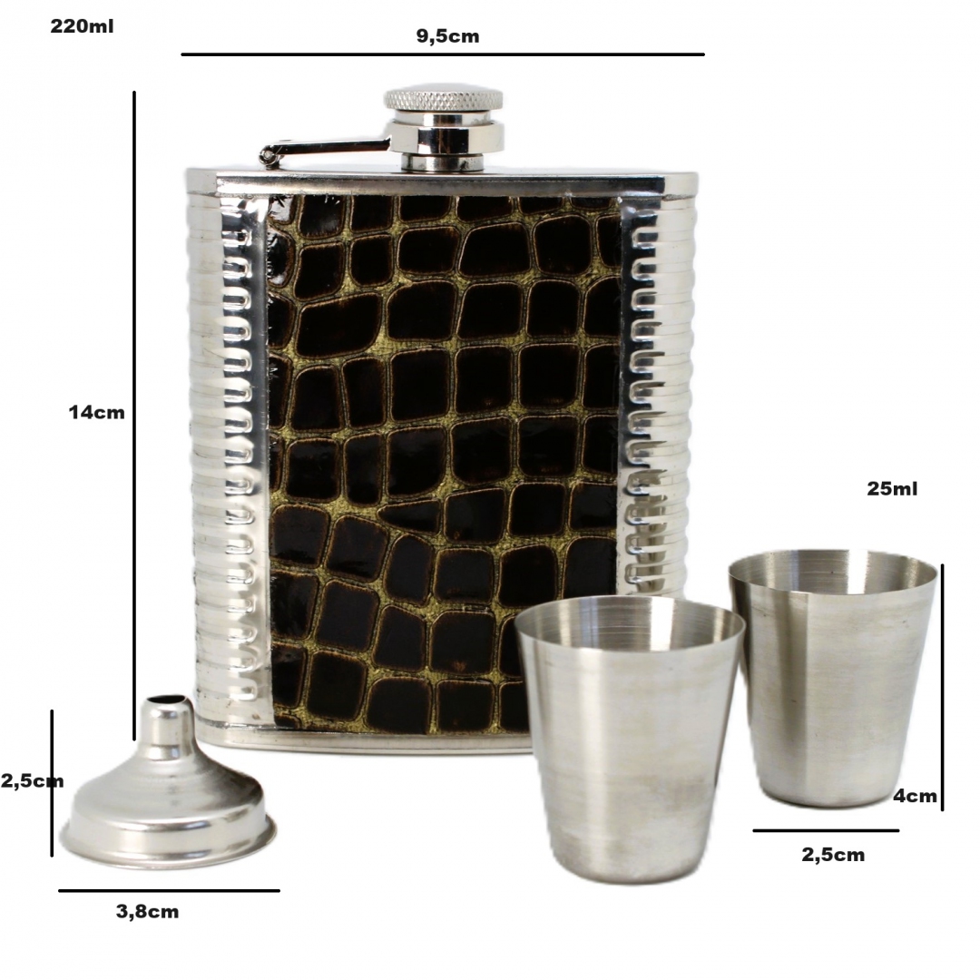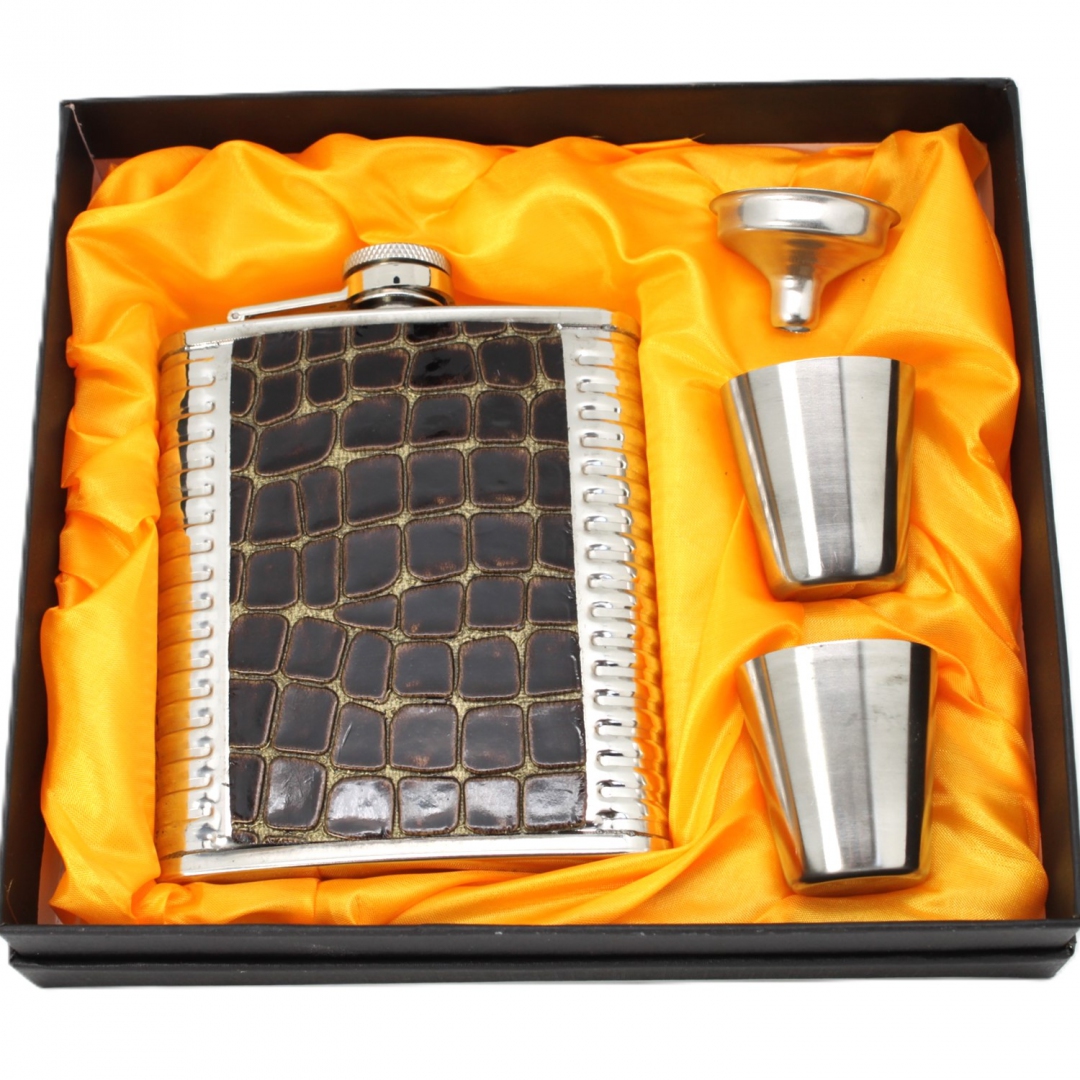 Przedstawiamy elegancką piersiówkę wraz z kieliszkami, idealną na prezent. Wysoka jakość wykonania oraz elegancki design sprawiają, że piersiówka z kieliszkami w prezentowym opakowaniu będzie nie tylko praktycznym, ale i pięknym upominkiem.