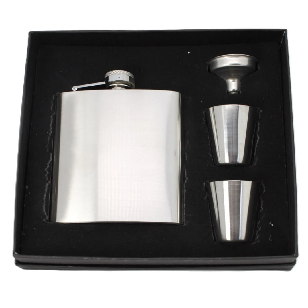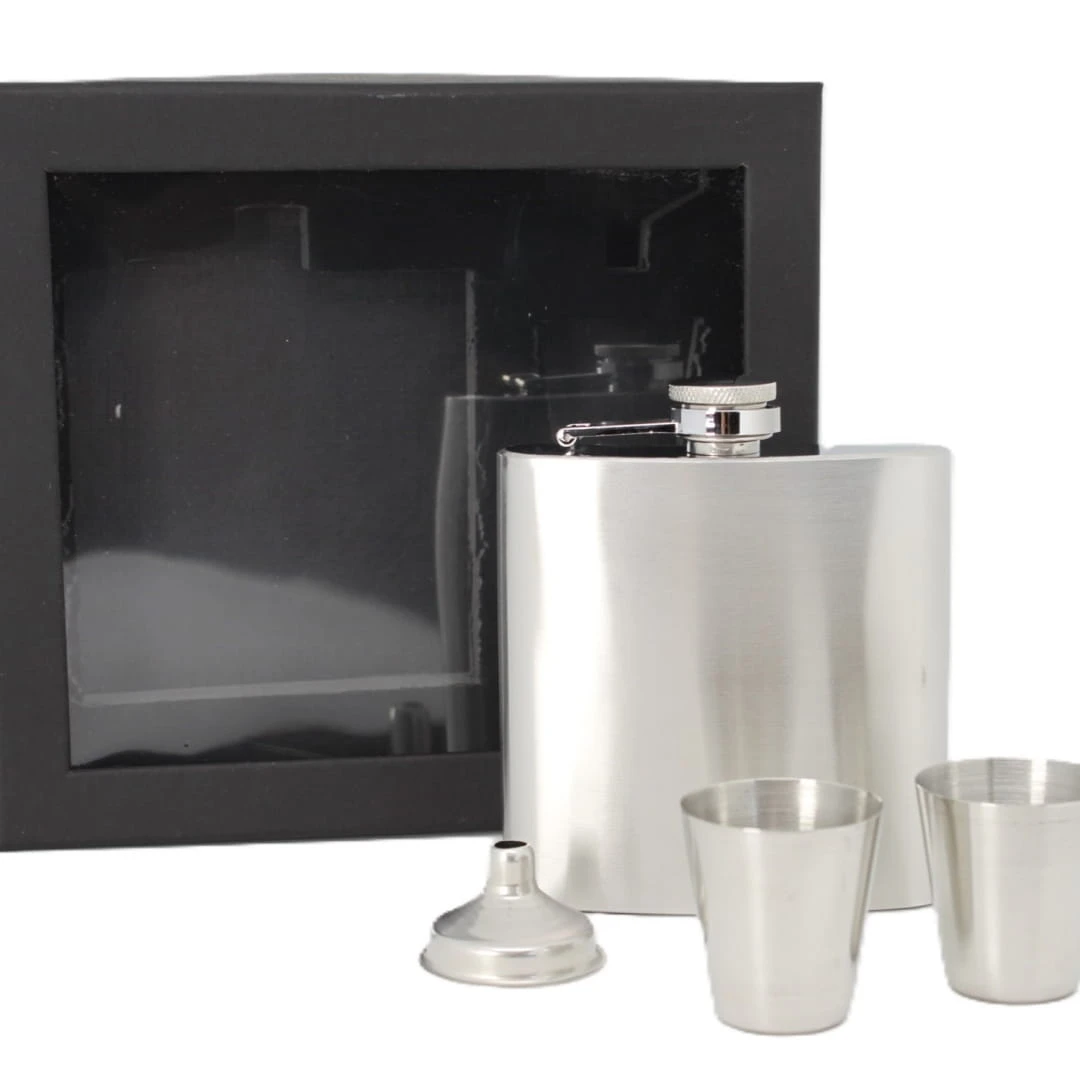 Przedstawiamy elegancką piersiówkę wraz z kieliszkami, idealną na prezent. Wysoka jakość wykonania oraz elegancki design sprawiają, że piersiówka z kieliszkami w prezentowym opakowaniu będzie nie tylko praktycznym, ale i pięknym upominkiem.