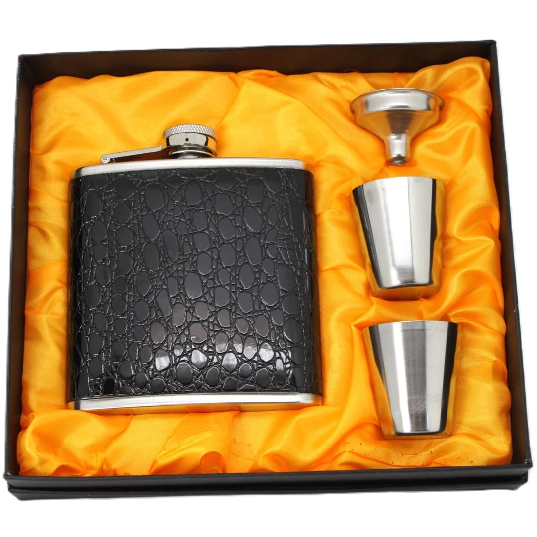 Przedstawiamy elegancką piersiówkę wraz z kieliszkami, idealną na prezent. Wysoka jakość wykonania oraz elegancki design sprawiają, że piersiówka z kieliszkami w prezentowym opakowaniu będzie nie tylko praktycznym, ale i pięknym upominkiem.