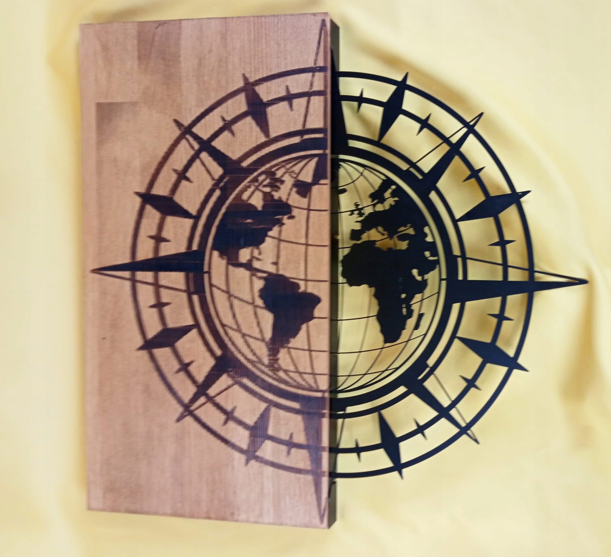 Drewniana płaskorzeźba z motywem metalowego świata wykonana w litym drewnie. Idealnie wkomponuje się we wnętrze w każdym stylu. Rzeźba ozdobi biuro, salon czy sypialnię. Będzie pięknym, dużym dodatkiem we wnętrzu.