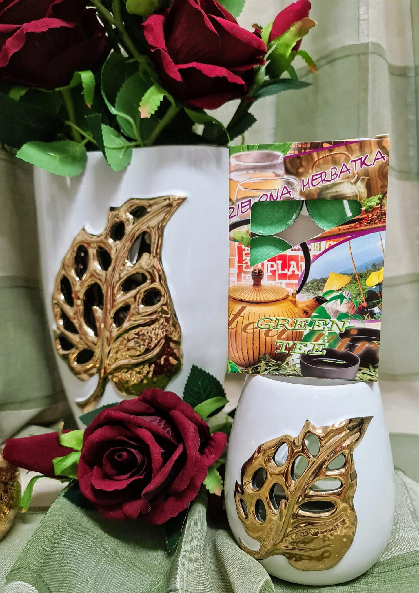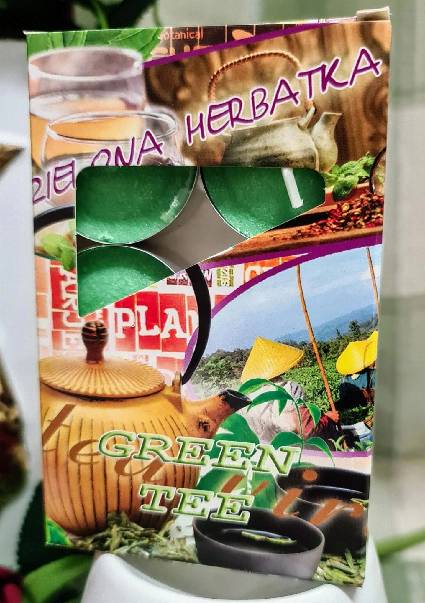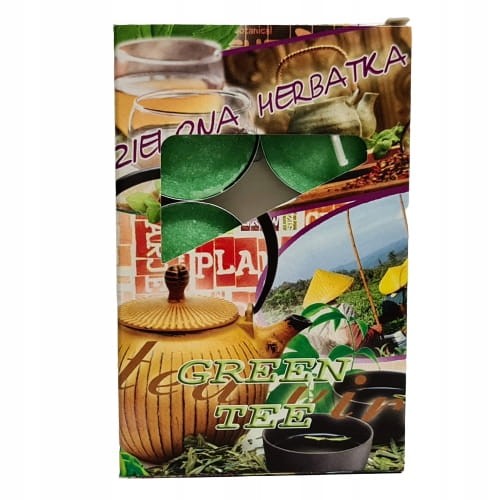Klasyczne podgrzewacze o wspaniałym zapachu zielonej herbaty , zapakowane w tekturowe opakowanie.