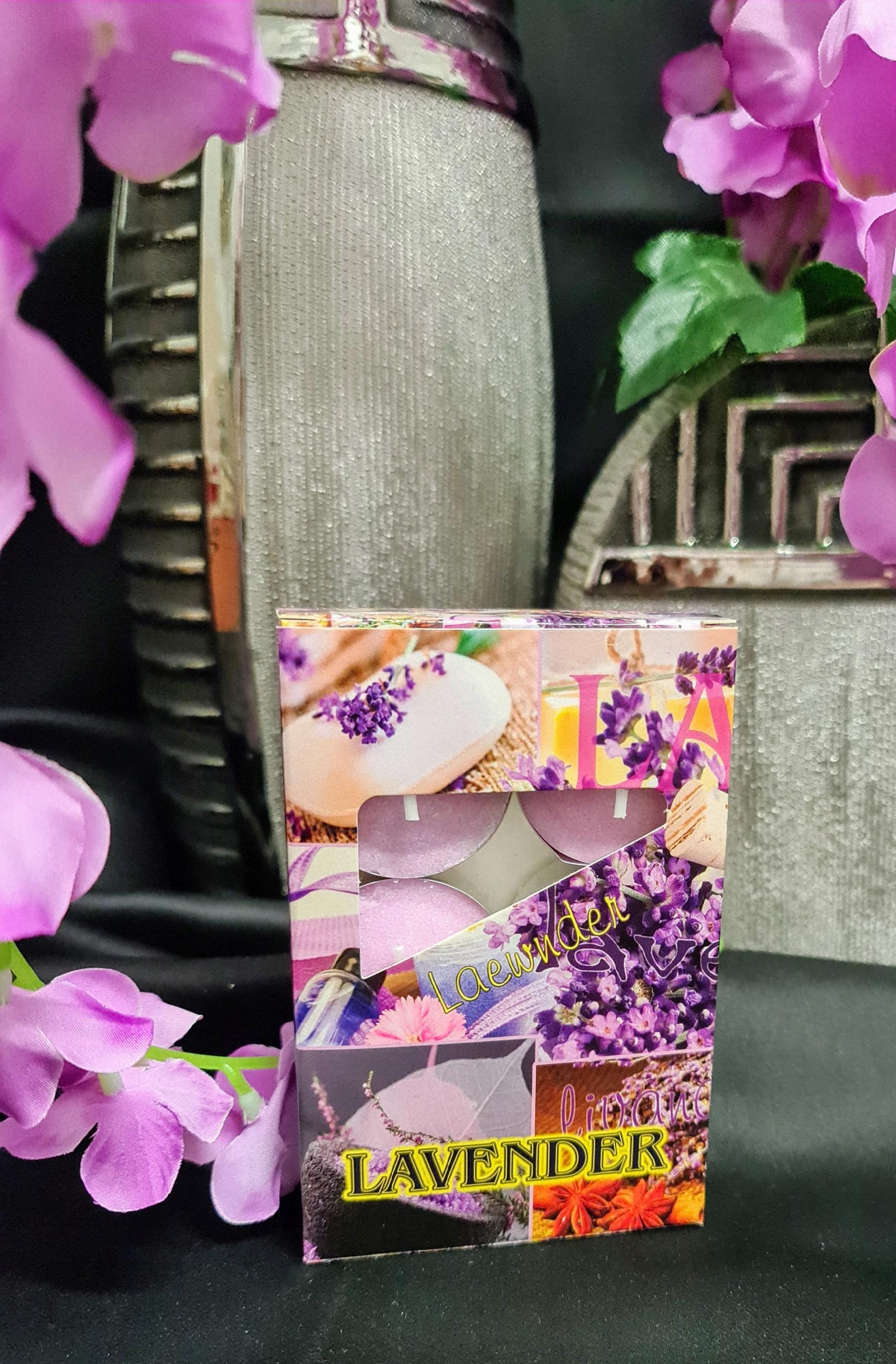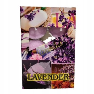Klasyczne podgrzewacze o wspaniałym zapachu lawendy, zapakowane w tekturowe opakowanie.