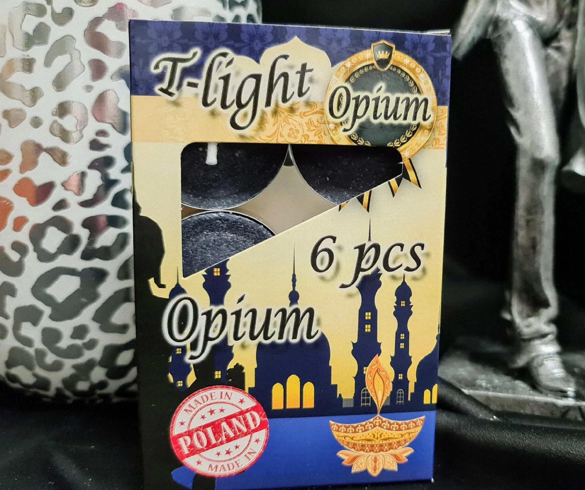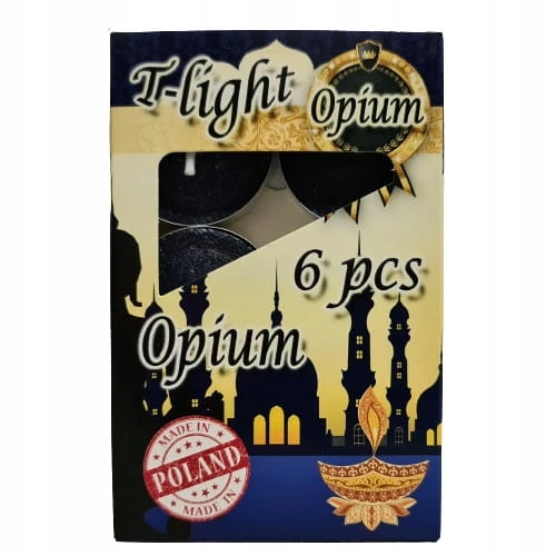 Klasyczne podgrzewacze o wspaniałym zapachu opium , zapakowane w tekturowe opakowanie.