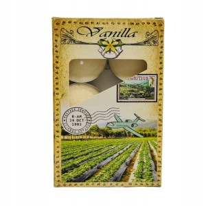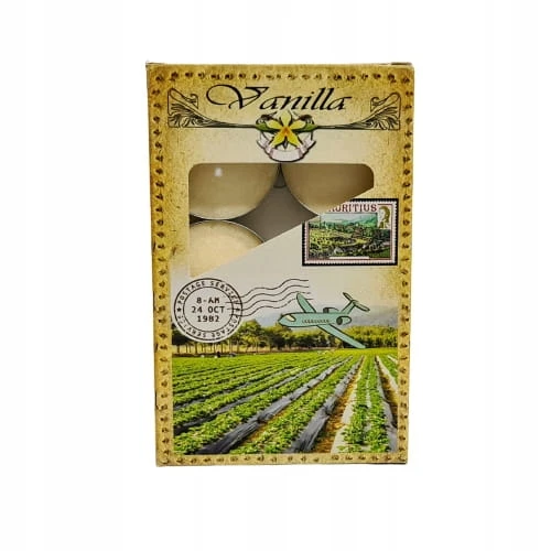 Klasyczne podgrzewacze o wspaniałym zapachu wanilii, zapakowane w tekturowe opakowanie.