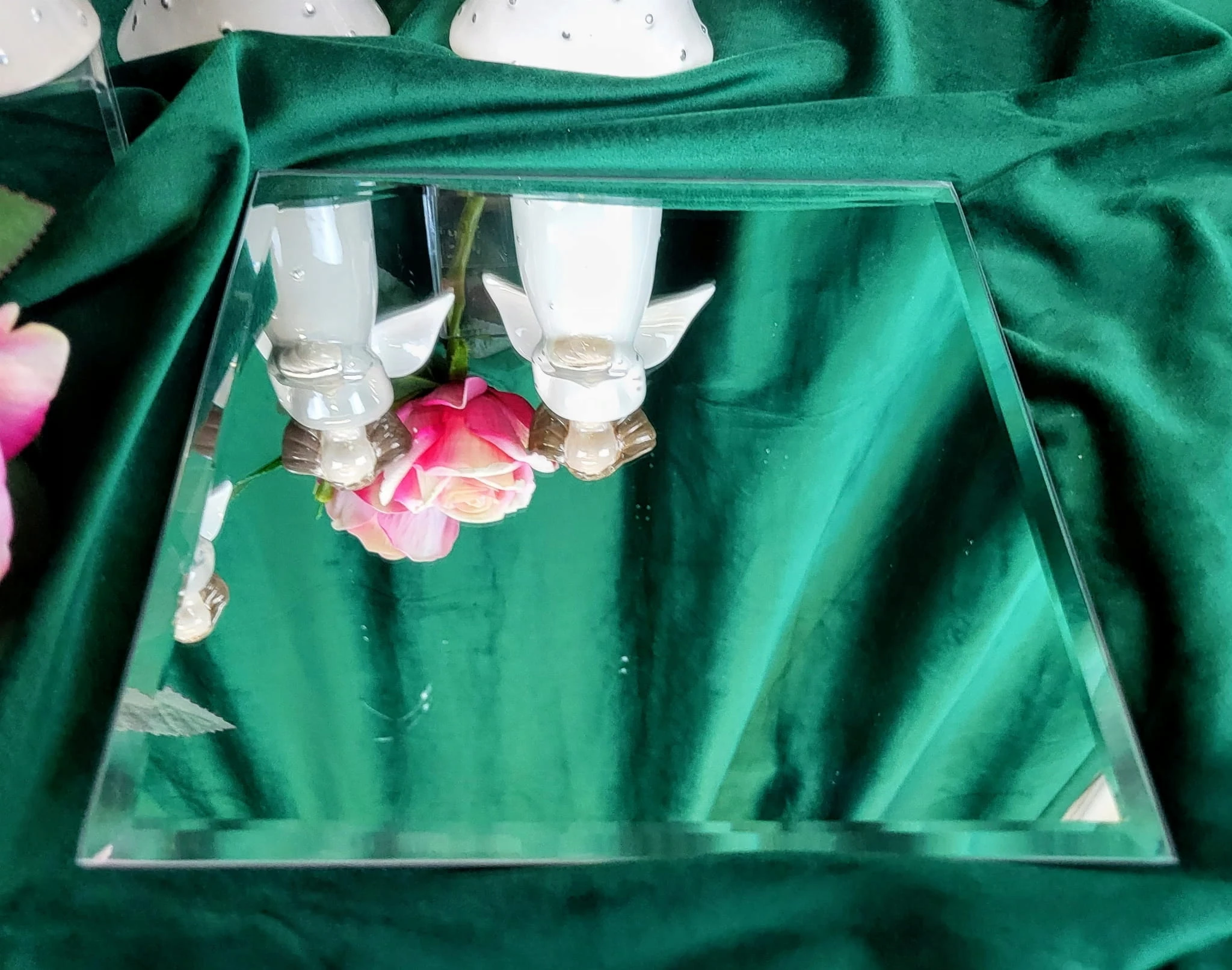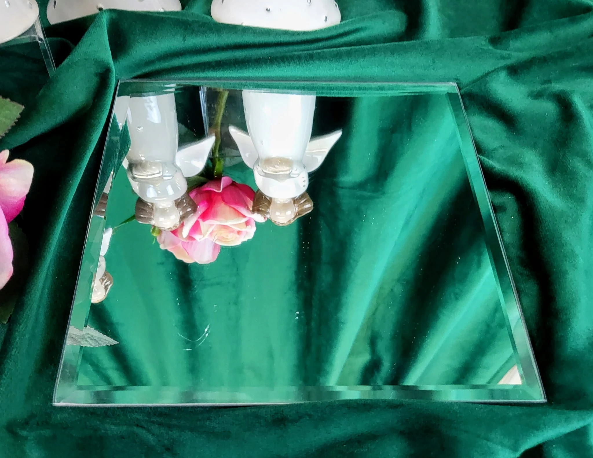 Lustrzana podstawka pod świecę. Zapobiega skapywaniu parafiny lub wosku na powierzchnię mebli.