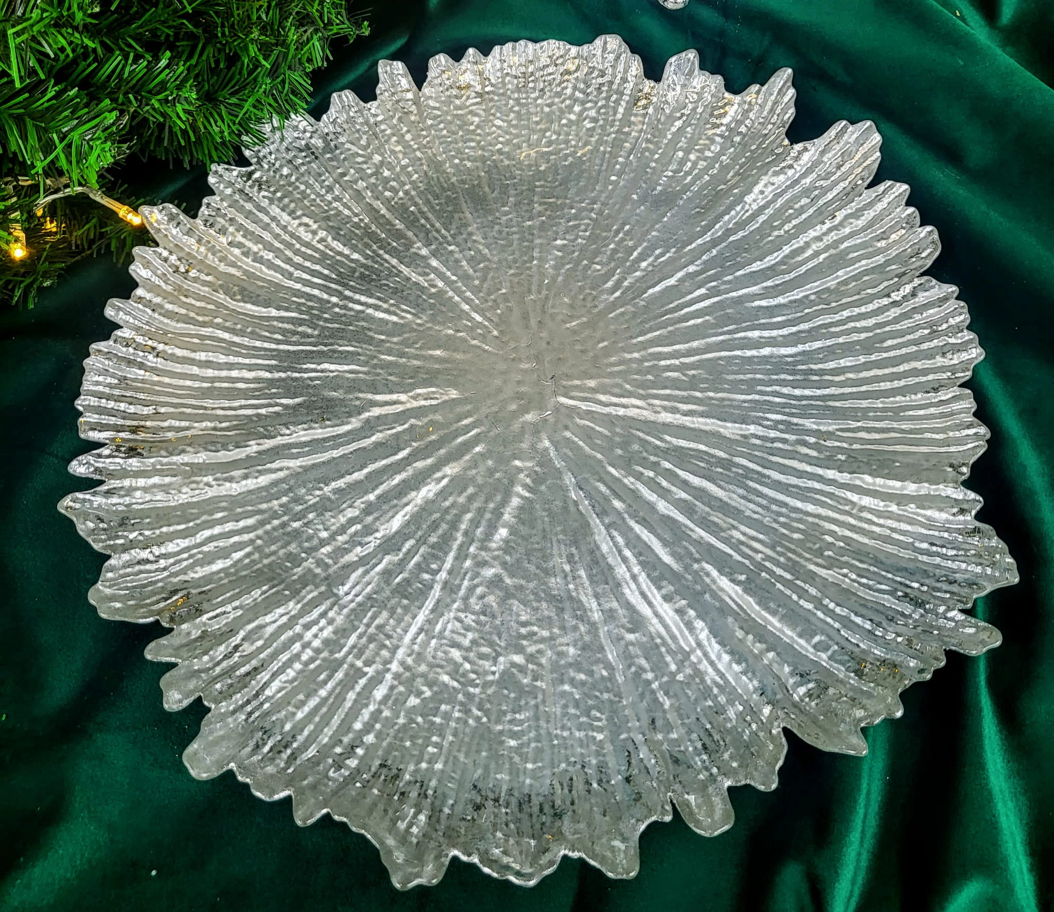 Ozdobny podtalerz lub talerz na ciasto, owoce jak i również na świece. Nada niepowtarzalnego charakteru i klimatu wnętrzu.