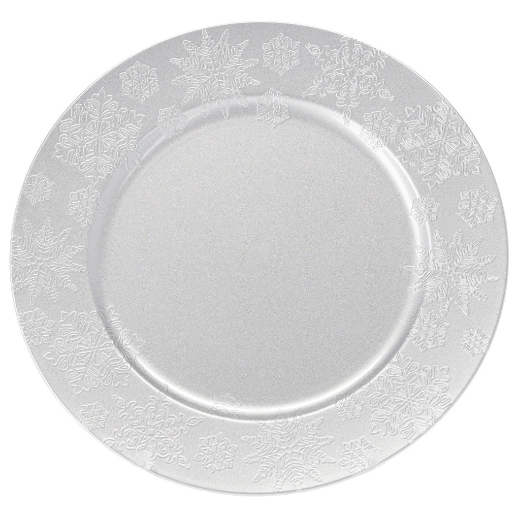 PODTALERZ OKRĄGŁY 33 x 33 x 2 CM ZE WZOREM ŚNIEŻYNEK SREBRNY