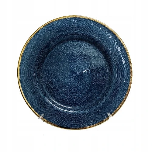 PODTALERZ SZKLANY GRANATOWY ZE ZŁOTYM BRZEGIEM