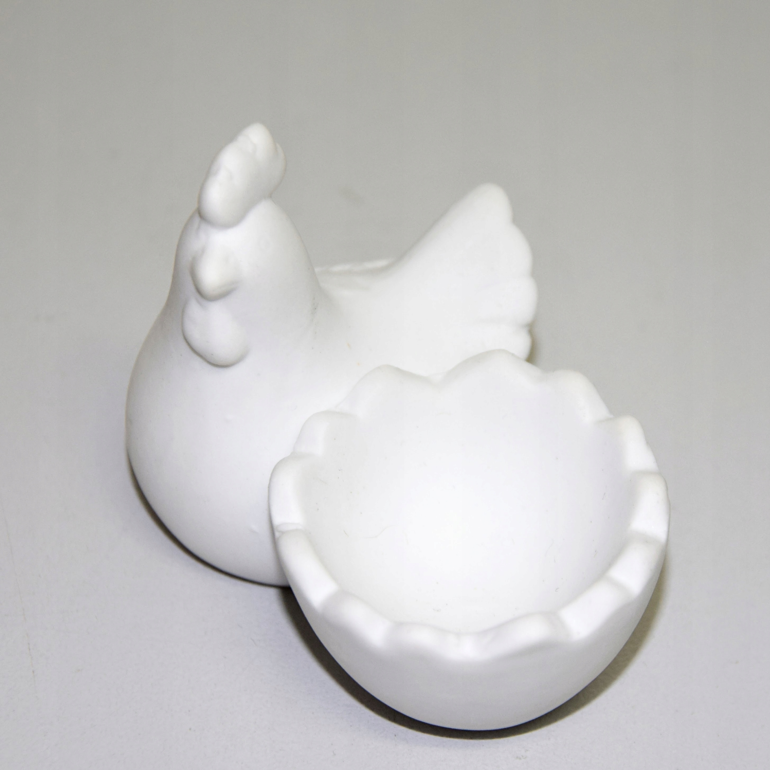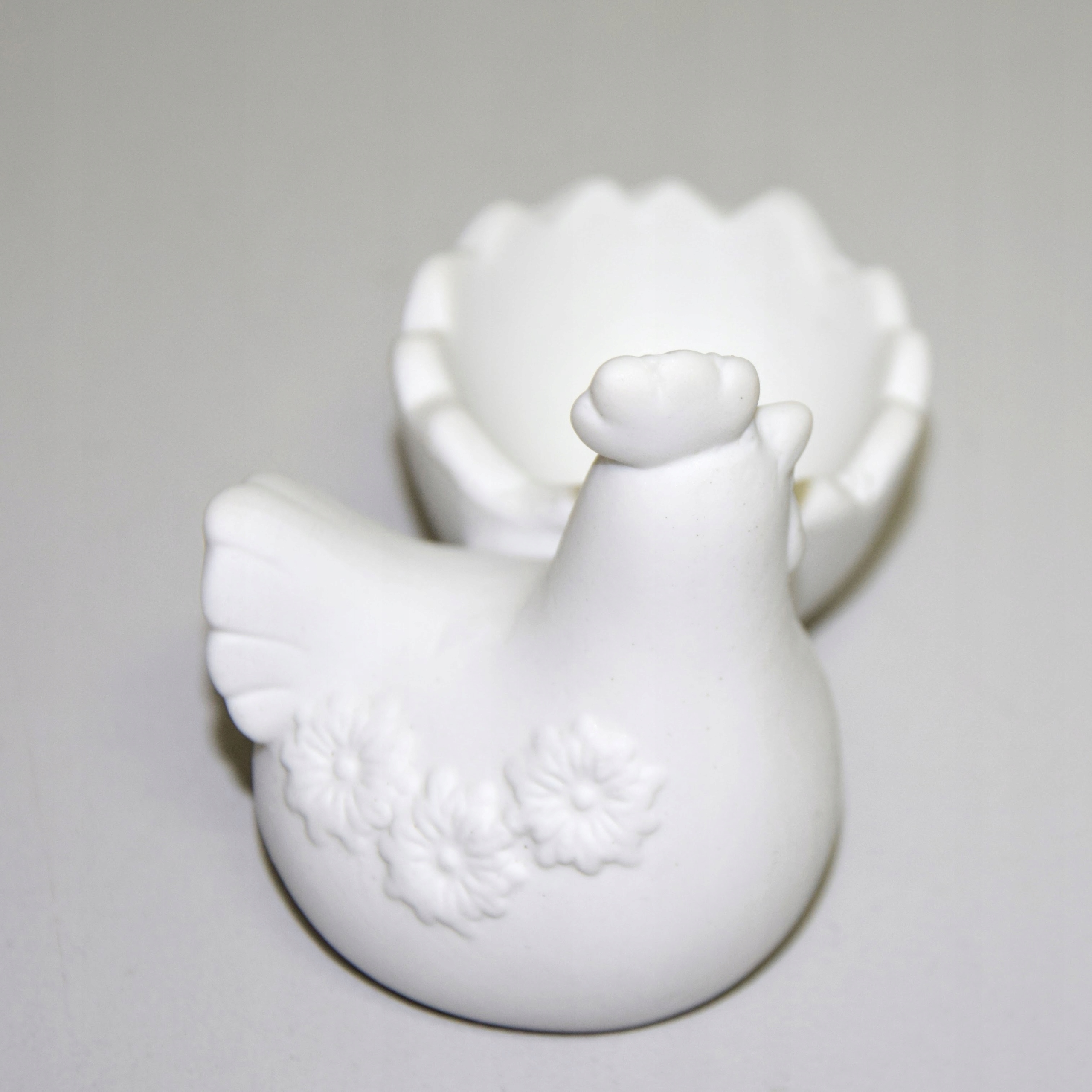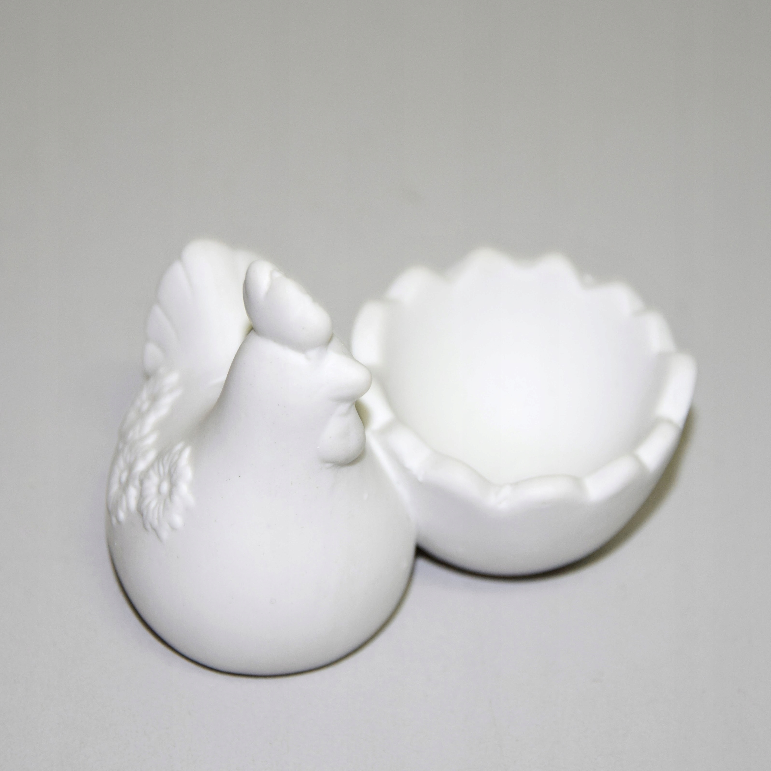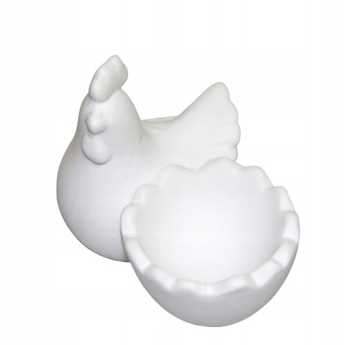 Ceramiczny pojemnik na jajko z kurą jest wykonana w minimalistycznym stylu. Posiada delikatne zdobienie