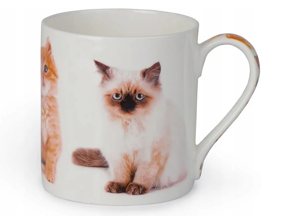 Porcelanowy Kubek Cztery Kotki - 380ml Kubek porcelanowy cztery kotki, porcelana Bone China.Kubek wykonany jest z wysokiej jakości porcelany Bone China w białym kolorze, z nadrukiem wesołych kociaków.Kubek jest klasycznego kształtu, o sporej pojemności – a mimo to leciutki i poręczny. Ucho kubka posiada ergonomiczny kształt, dzięki czemu dopasowuje się do każdej dłoni.Kubki pakowane są w prezentowe pudełko z nadrukiem.Polecamy na prezent dla miłośników kotów, prezent dla koleżanki, prezent dla dziewczynki.